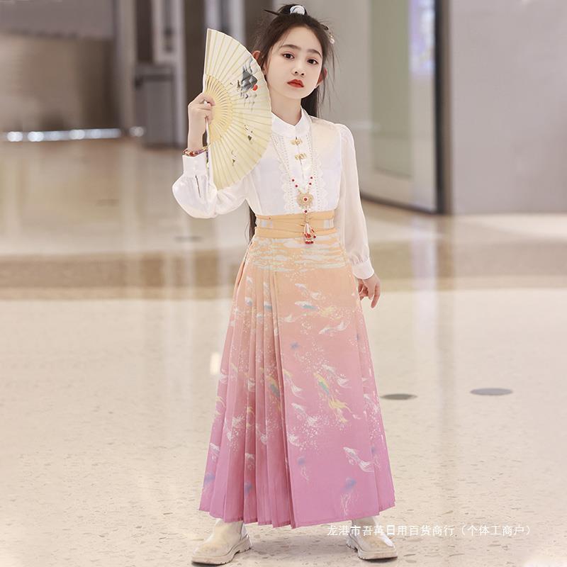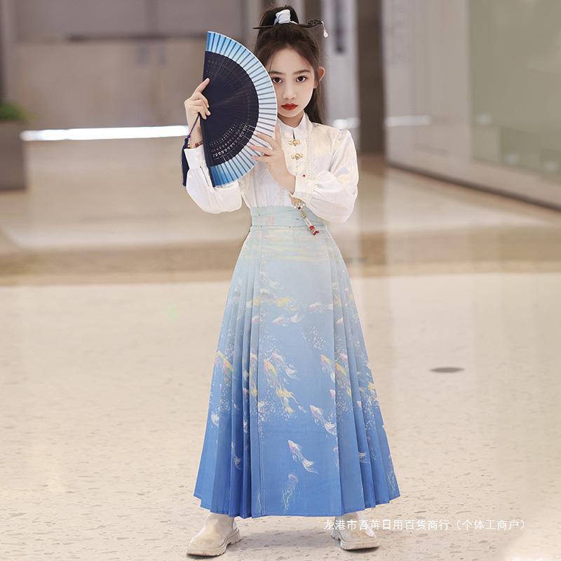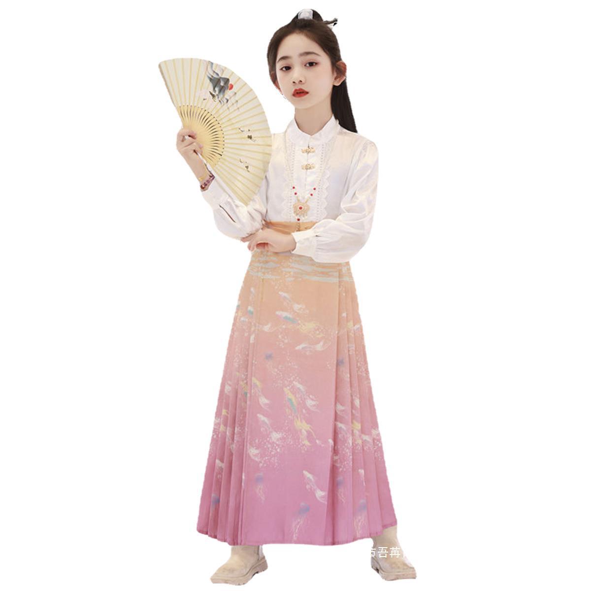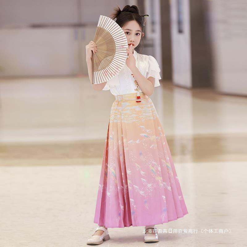 | nameOriginal | Girls' Horse-faced Skirt suit Chinese-style Summer Children's Improved Antique Super Fairy Hanfu Skirt Big Children's New Chinese-style Tang Suit |