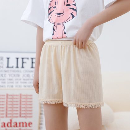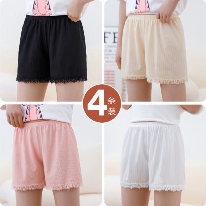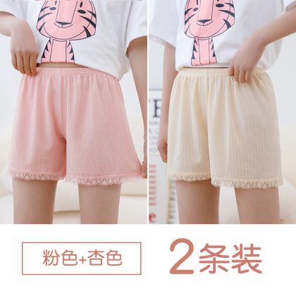 Girls’ Ice Silk Safety Pants Anti-running Light Can be worn in Summer Loose Lace Large and Large Children’s Bottoming Shorts with Skirt