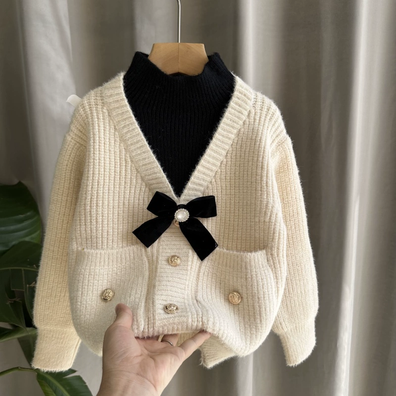 Girls’ Imitation Mink Winter Clothes Small Fragrant Style Soft Waxy Bow