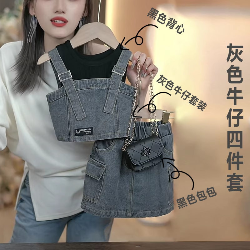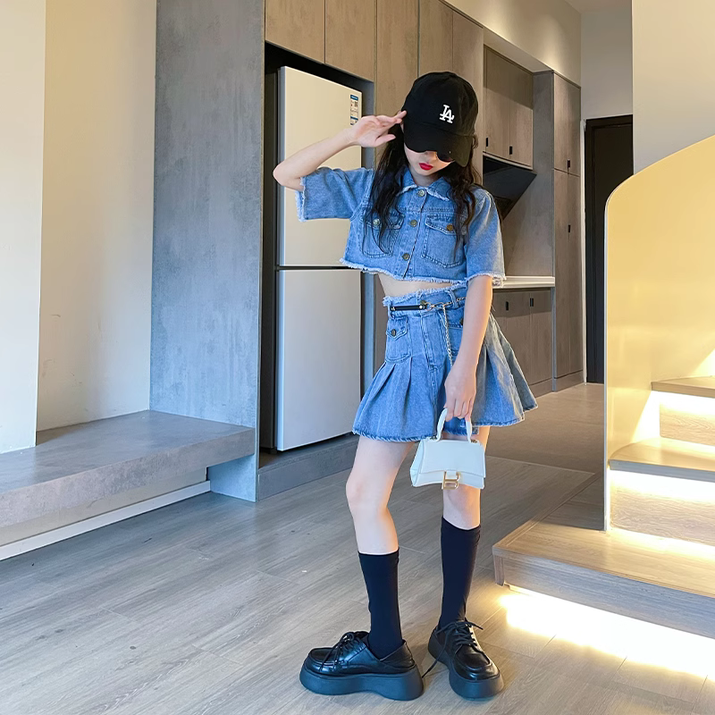 | nameOriginal | Girls Internet Celebrity Suit 2024 New Children's Summer Style Denim Skirt Girls' Summer Clothes Fashionable Suspender Skirt |