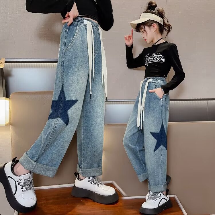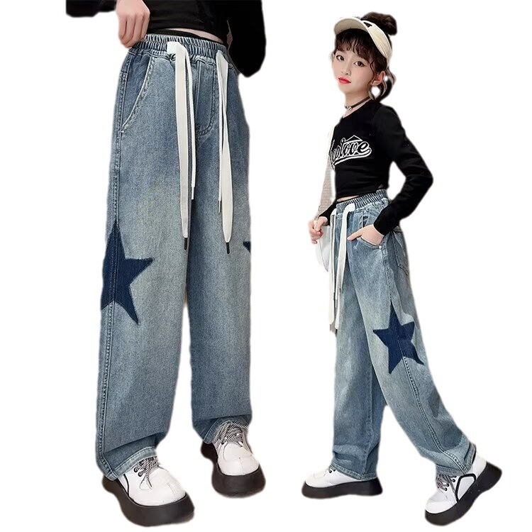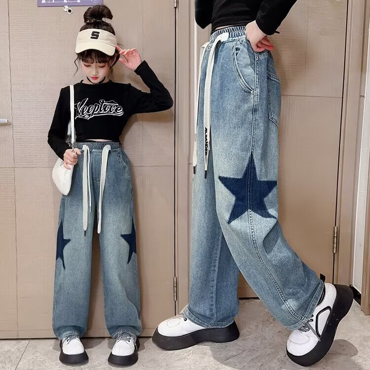 | nameOriginal | Girls' Jeans 2024 Spring and Autumn New Korean Style Western Style Large Children's Straight Wide Leg Pants Autumn Long Trendy Cool Pants |