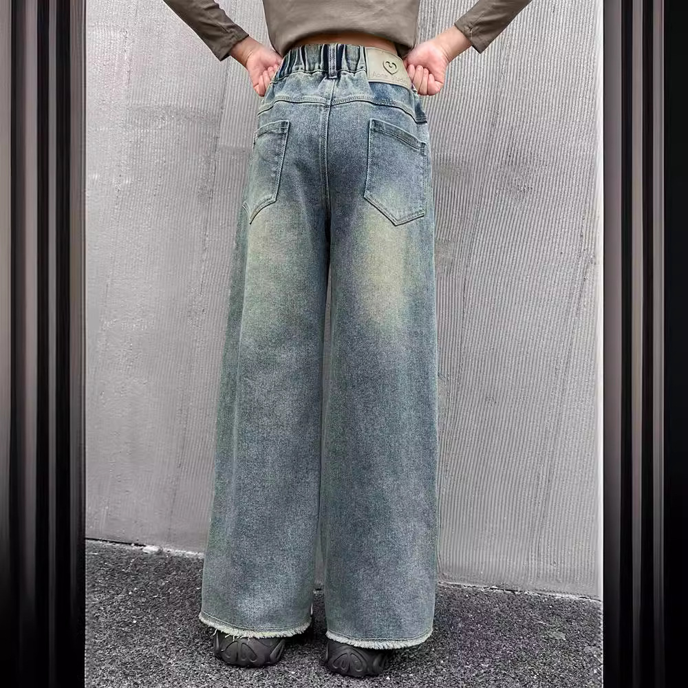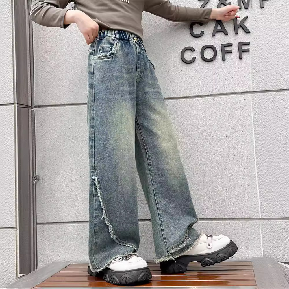 | nameOriginal | Girls' Jeans 2024 Spring and Autumn Pants Fashionable Western-style Children's Autumn Straight-leg Loose Wide-leg Pants |