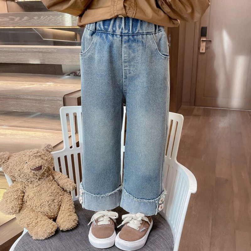 | nameOriginal | Girls' Jeans Spring and Autumn 2024 New Four-flower Baby Girl Spring Children's Spring Straight Wide-leg Pants |