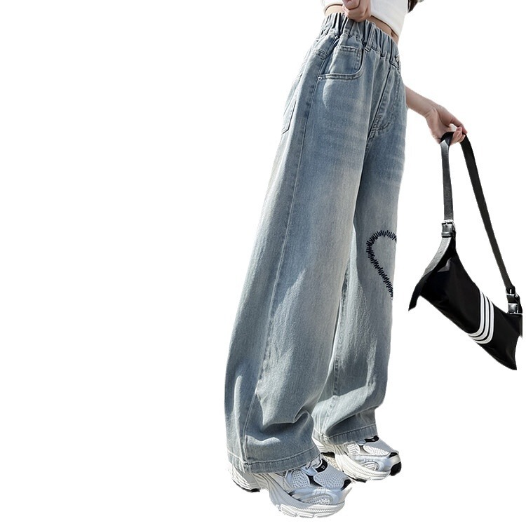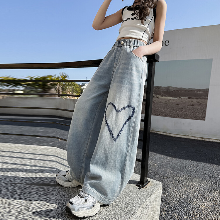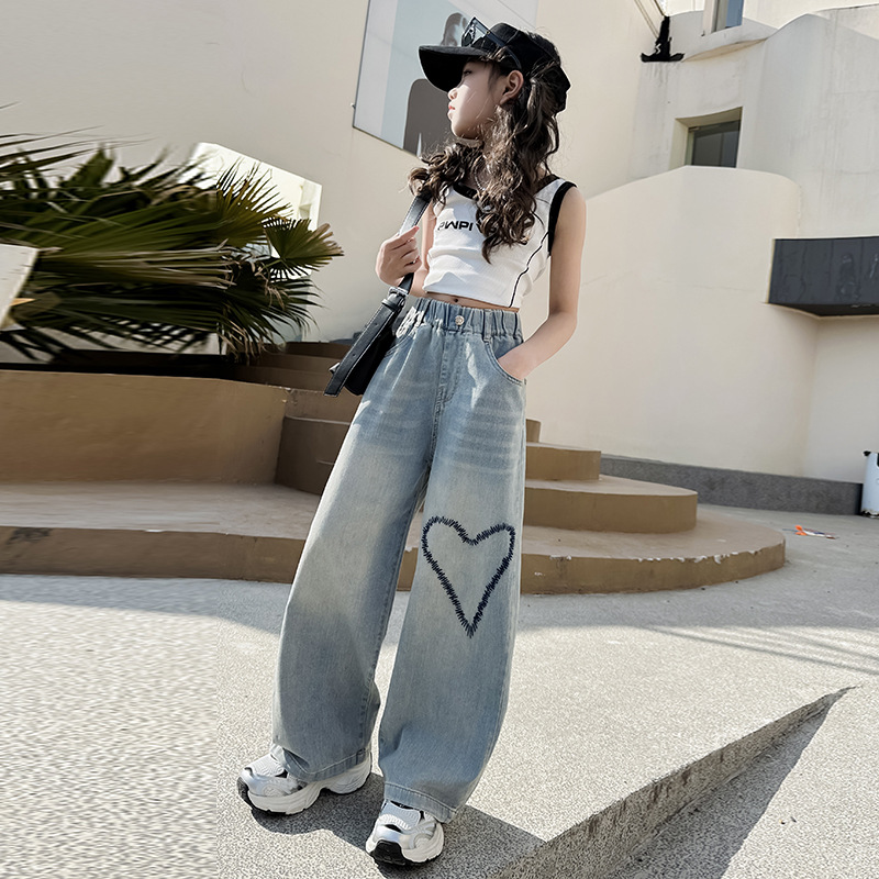 | nameOriginal | Girls' Jeans Spring and Autumn 2024 Spring and Summer New Fashion Girls' Korean Style Middle and Big Children's Love Denim Wide Leg Pants |