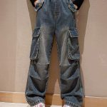 Girls’ jeans spring and autumn middle and big Children mopping trousers children’s trendy cool hip hop pants girls’ fried street wide-leg pants