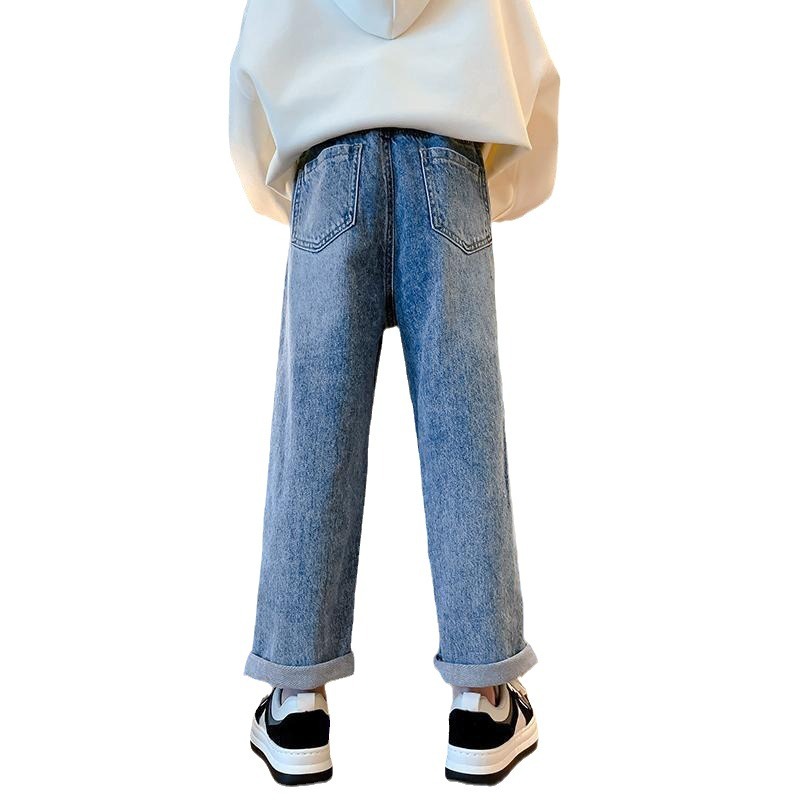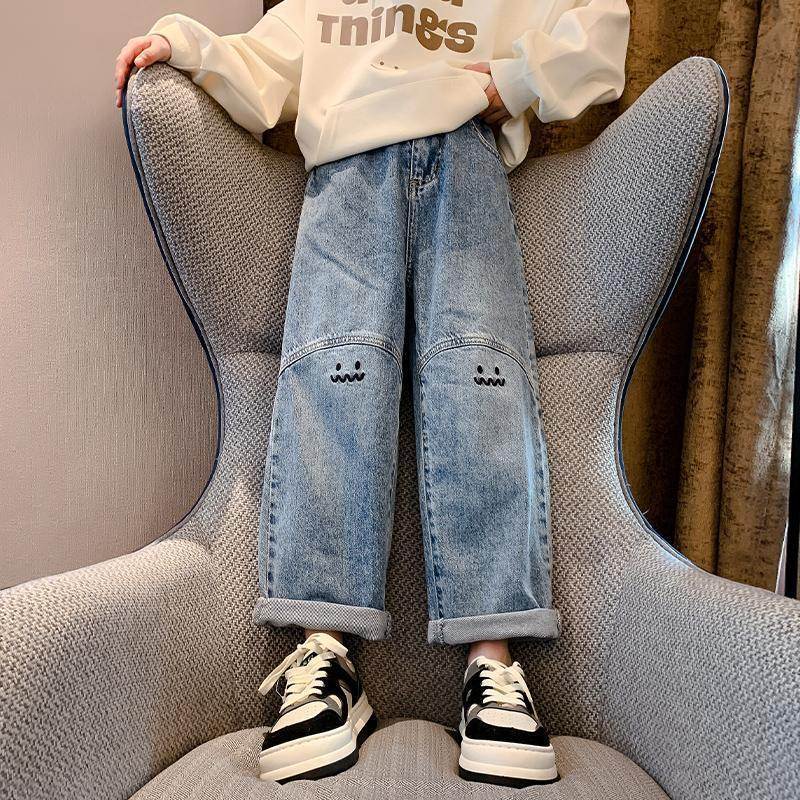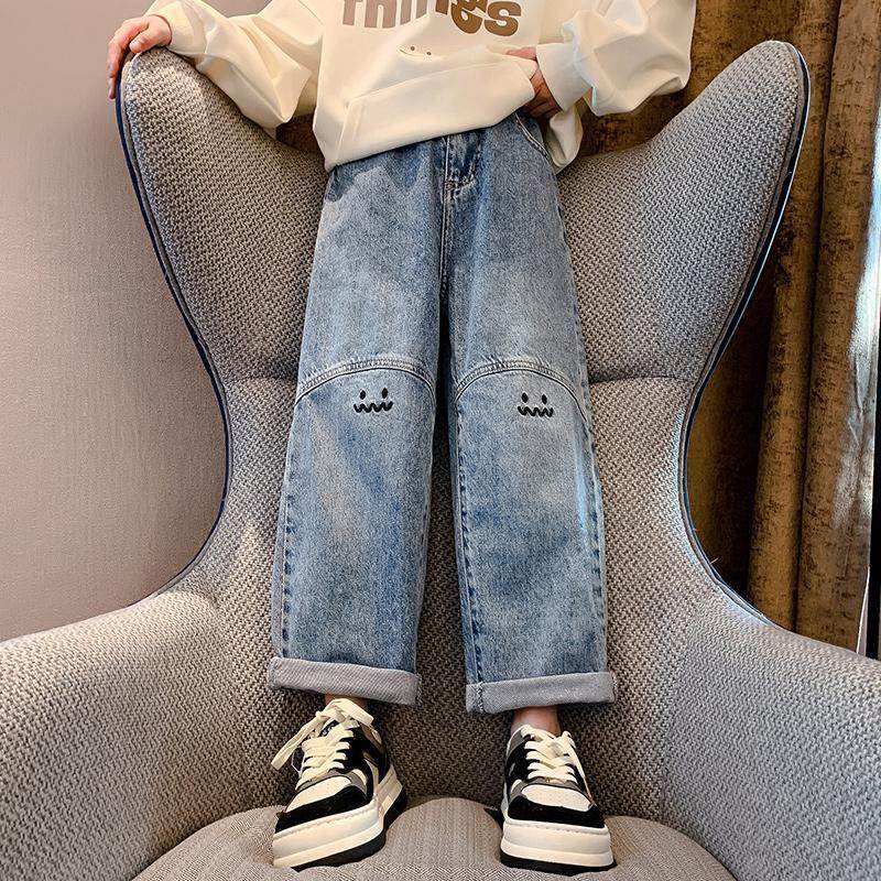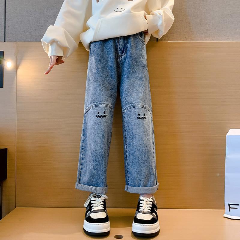 | nameOriginal | Girls' Jeans Spring and Autumn New Women's Big Kids Casual Western Style Straight Student Cartoon Wide Leg Pants Children's Pants |