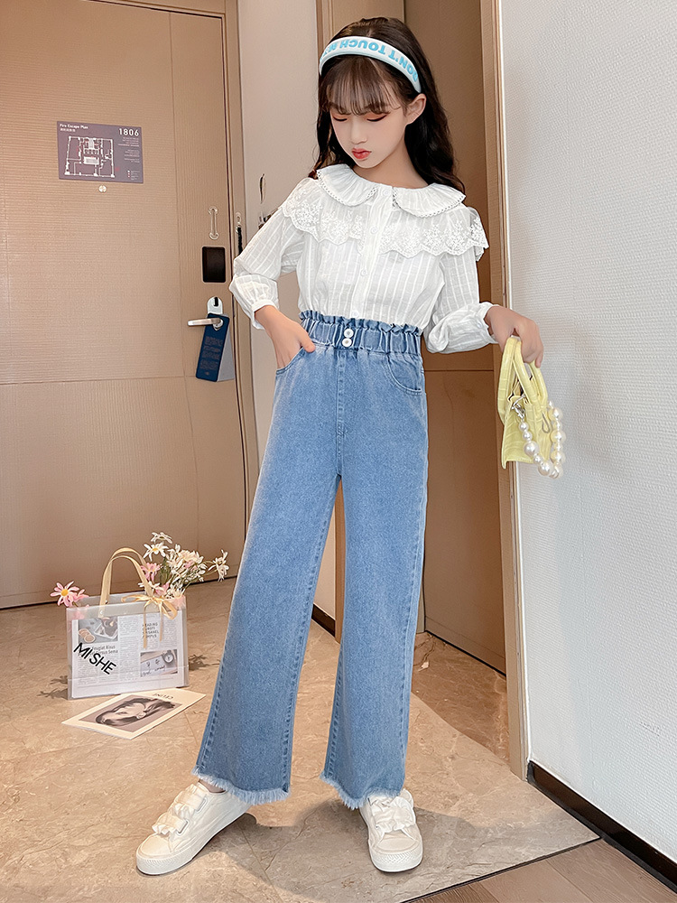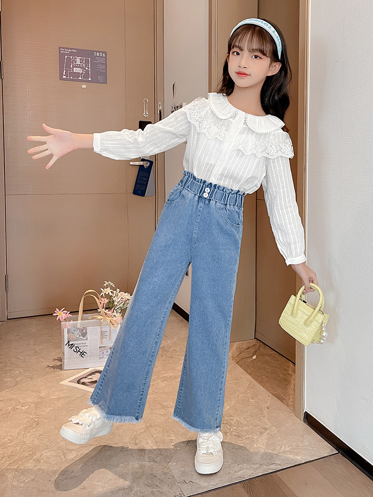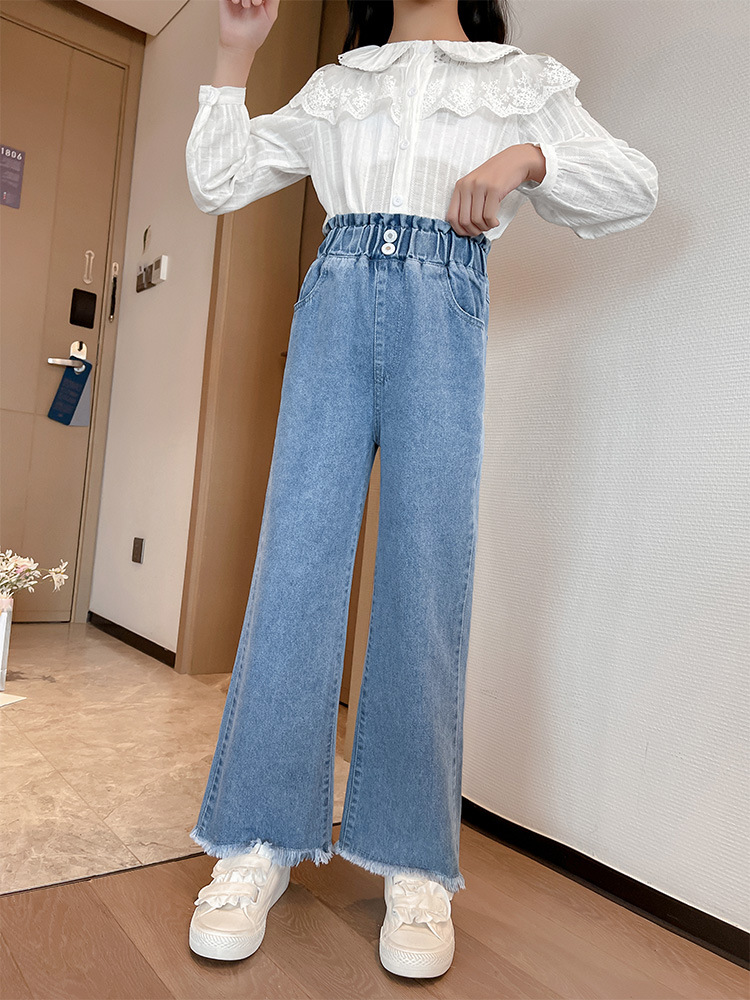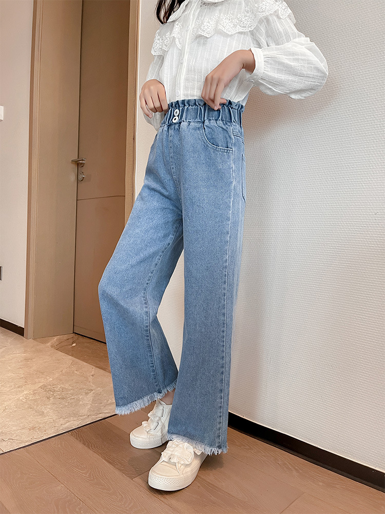 | nameOriginal | Girls' jeans wide-leg pants 2023 Spring and Autumn New Western style medium and large Children Korean style autumn pants outer pants |