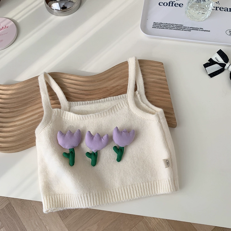 | nameOriginal | Girls' Knitted Camisole Spring Clothing 2024 New Sweater Baby Flower Shirt Children's Korean Purple Flared Pants |