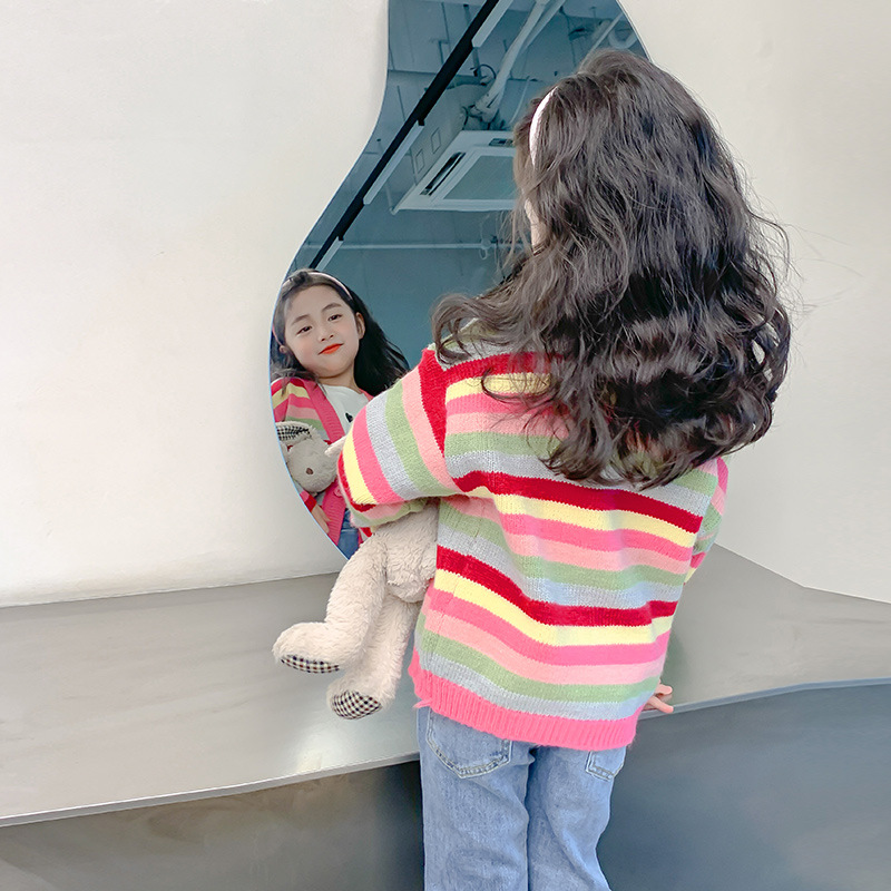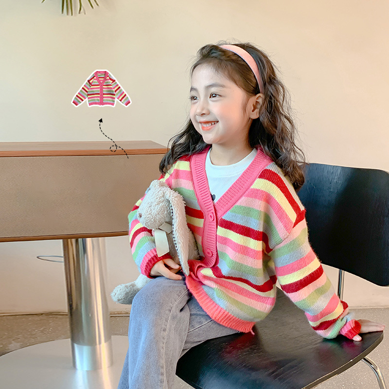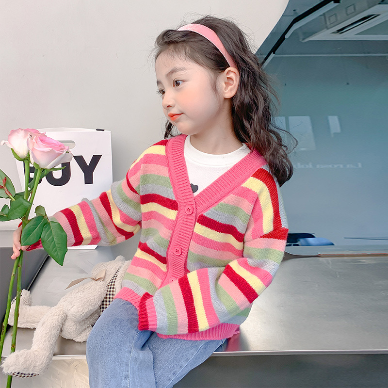 | nameOriginal | Girls' knitted cardigan 2023 Autumn New dopamine rainbow high-grade sweater coat Western style baby top |