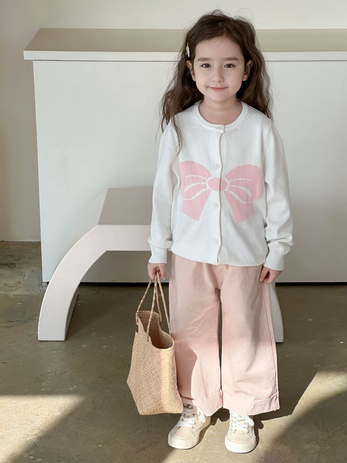 Girls’ knitted cardigan 2024 spring new Korean style western style knitwear bow sweater children’s casual top