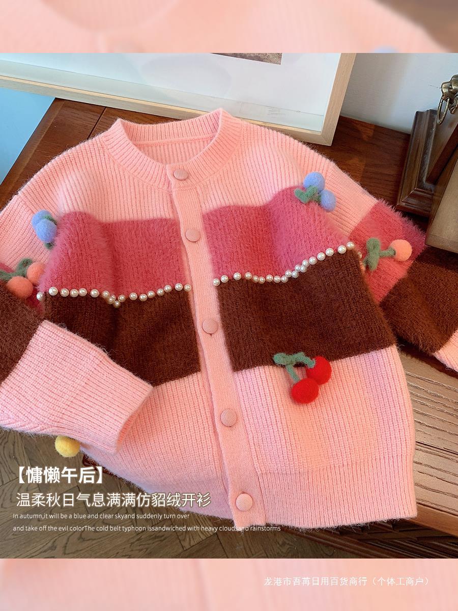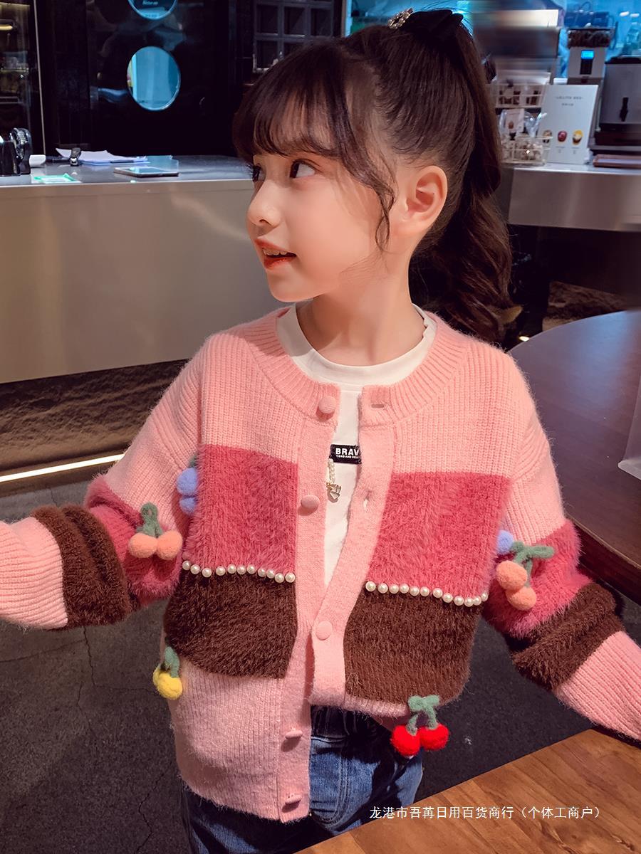 | nameOriginal | Girls' knitted cardigan autumn clothing 2023 new western style children's faux mink fleece top little girl Korean style sweater coat |