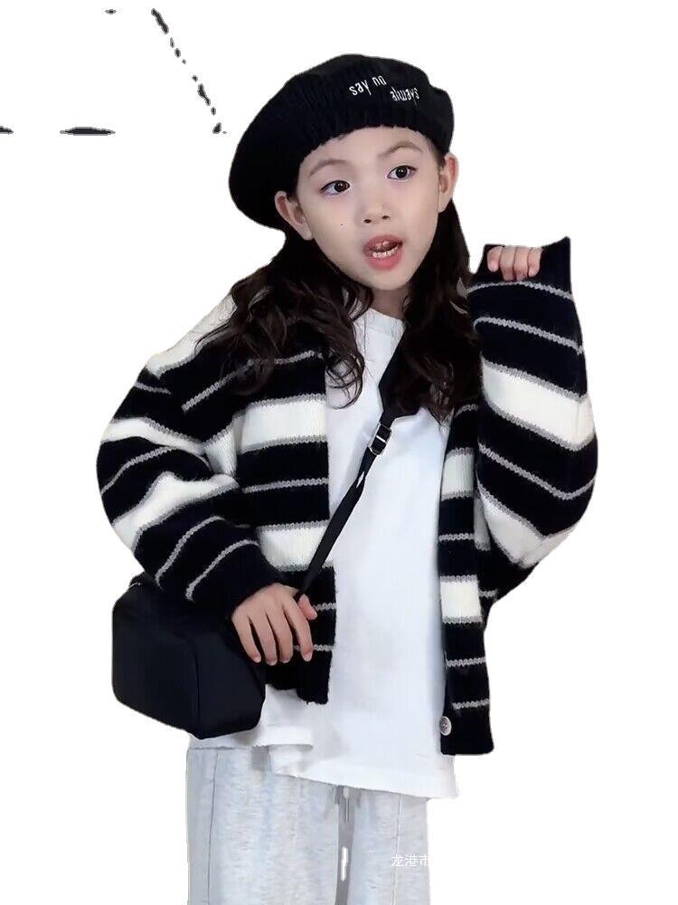 | nameOriginal | Girls' knitted cardigan coat Spring and Autumn 2023 new children's autumn top Korean style girls' striped sweater western style |