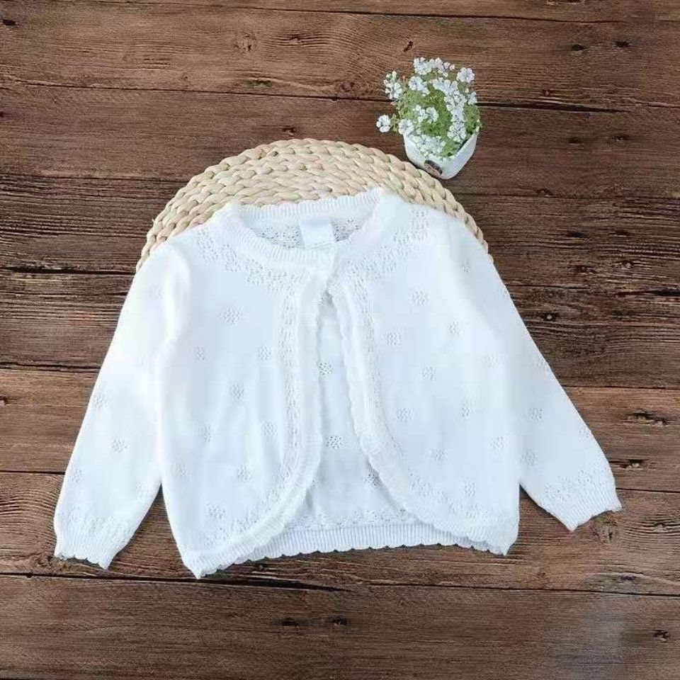 Girls Knitted Cardigan Cotton Hollow Small Shawl Baby Sweater Sunscreen Air-conditioning Shirt