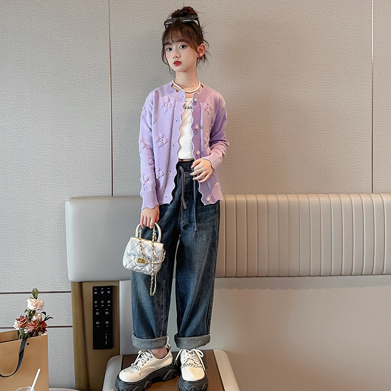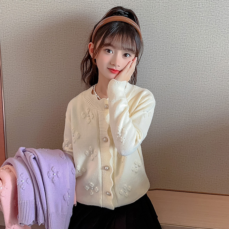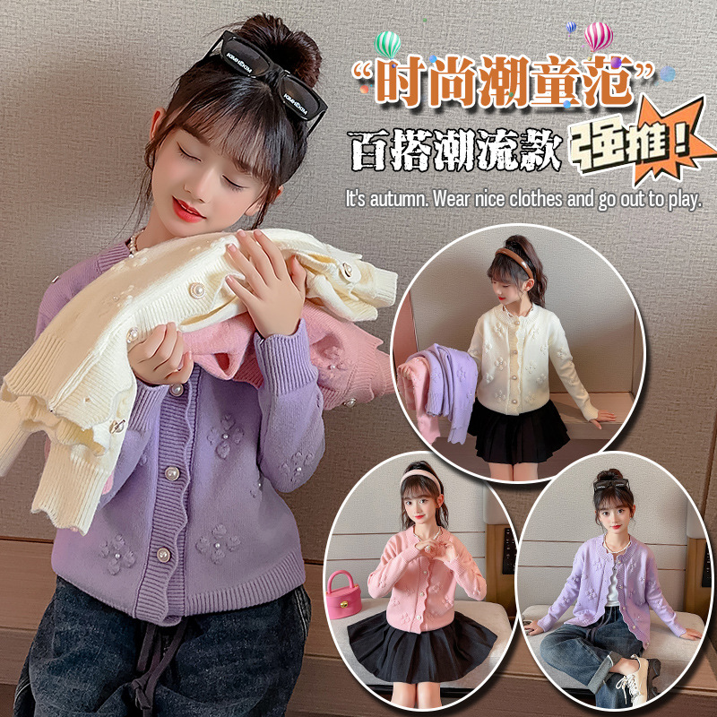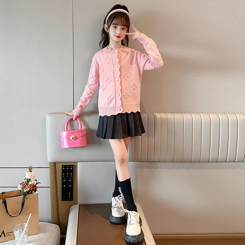 | nameOriginal | Girls' knitted cardigan Spring and Autumn 2023 new medium and large children's sweater coat fashionable round neck sweater |