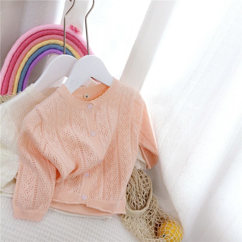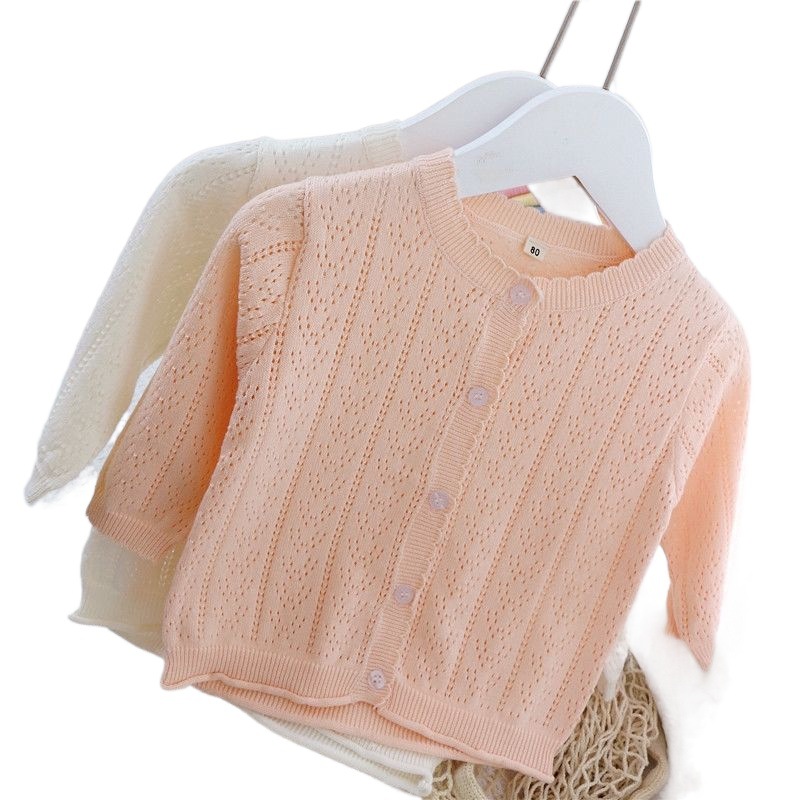nameOriginal | Girls' knitted cardigan spring and autumn baby thin 3/4 sleeve hollow shawl children's coat air conditioning shirt |