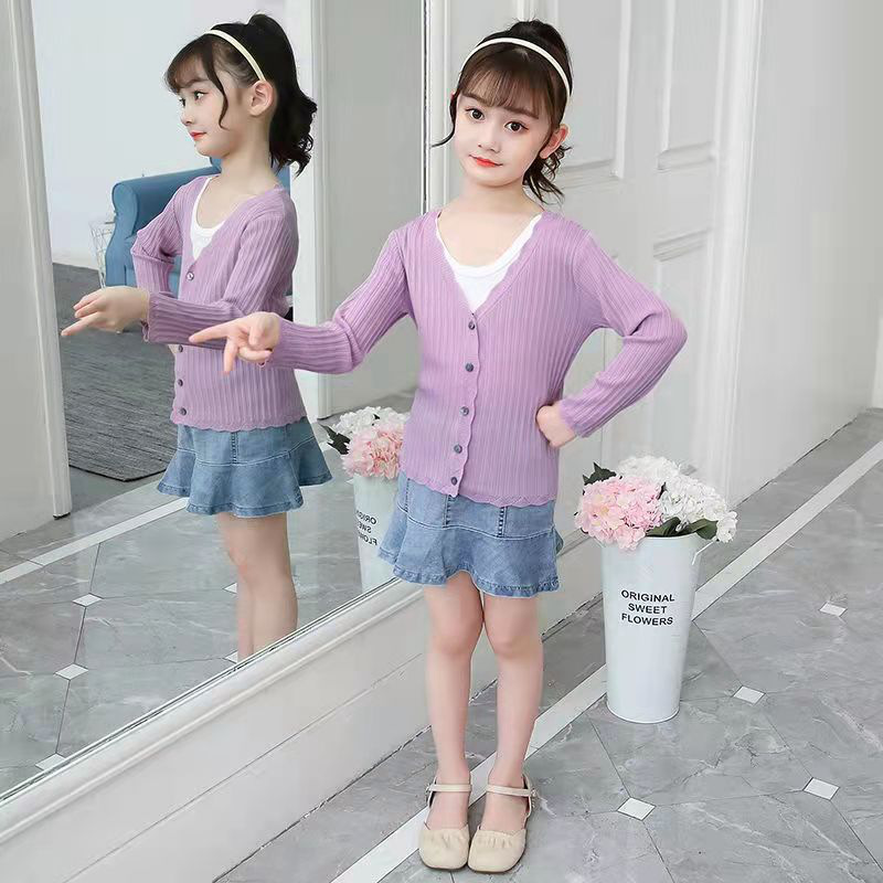| nameOriginal | Girls' knitted cardigan thin 2022 new cute Ice Silk 8-year-old coat air conditioning shirt sun protection clothing new simple |