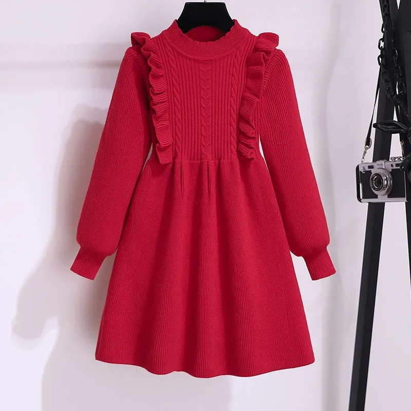 | nameOriginal | Girls Knitted Dress Autumn and Winter Autumn Children's Sweater Dress Red New Year Little Girl Sweet Princess Dress |