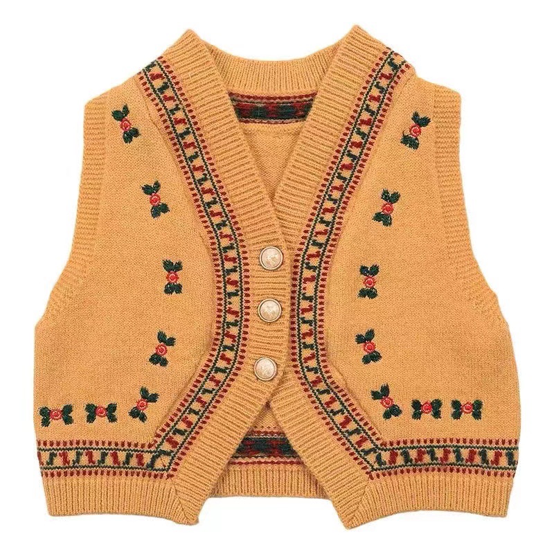 | nameOriginal | Girls' Knitted Wool Vest 2023 Spring and Autumn New Style Western Style Top Embroidered Children's Vest |