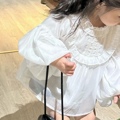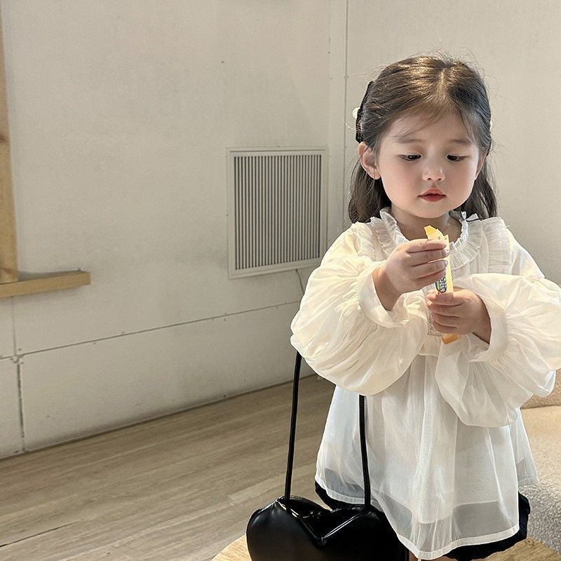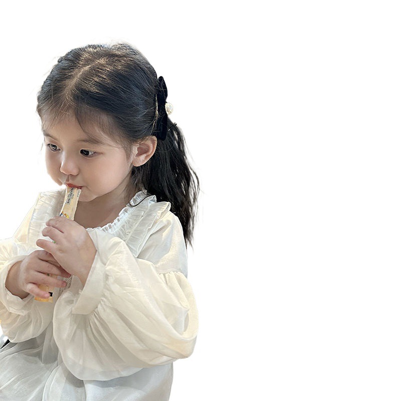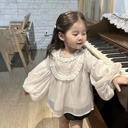 | nameOriginal | Girls' Korean-style chiffon long-sleeved shirt 2024 new children's round neck doll shirt solid color shirt puff sleeve top |