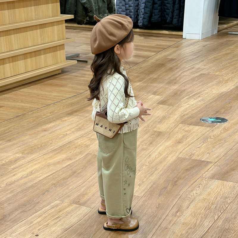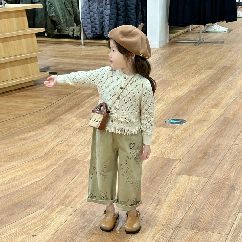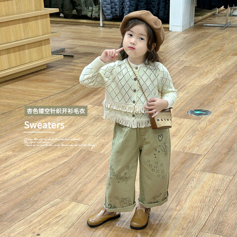 | nameOriginal | Girls' Korean style fashionable tassel sweater 2024 spring new girls' knitted cardigan jacket printed casual pants |