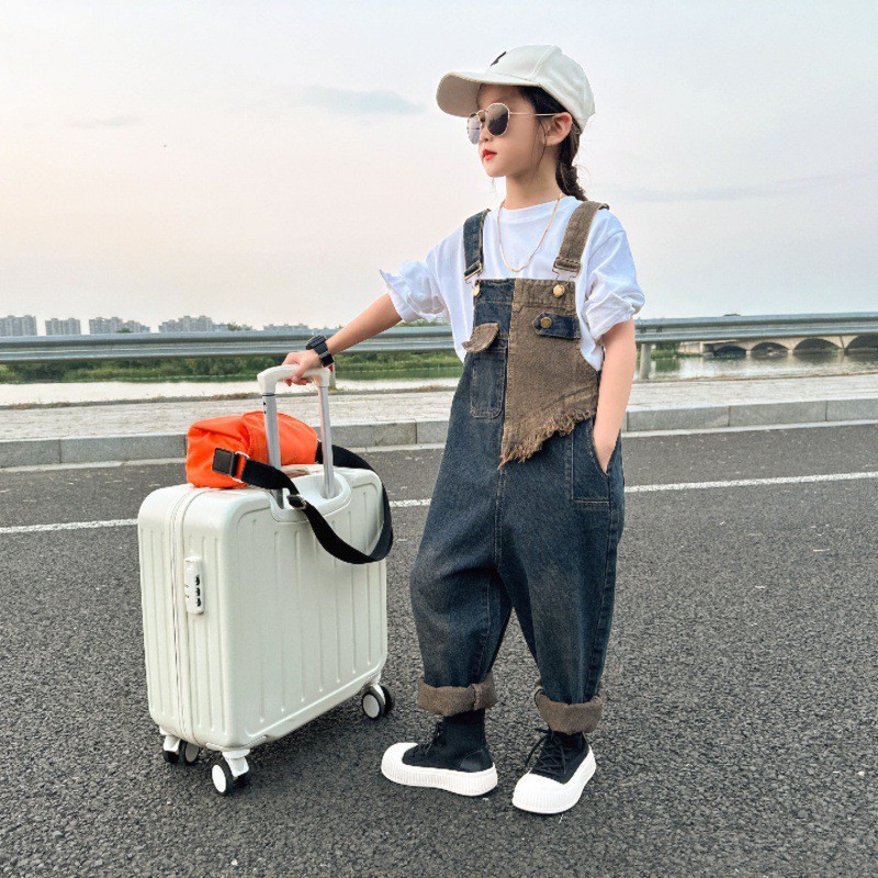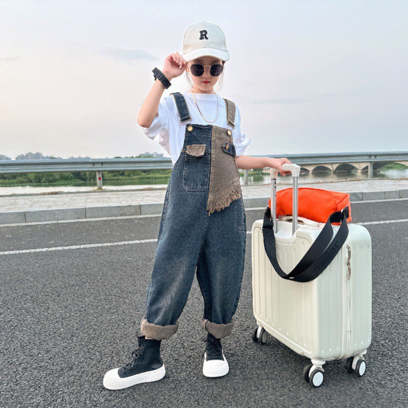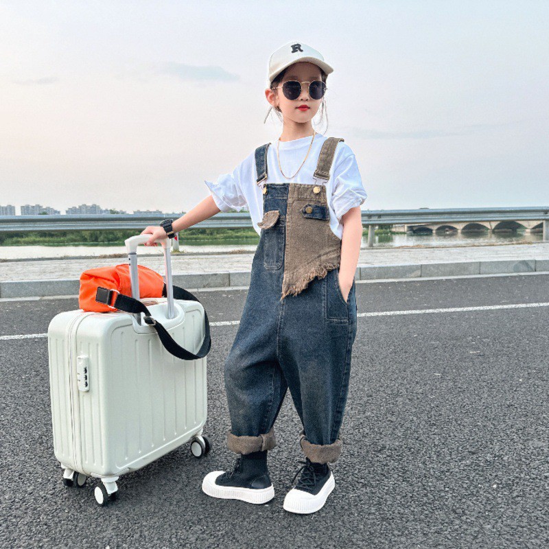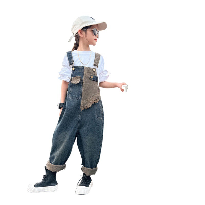 | nameOriginal | Girls' Korean-style Street-style Half-stitched Denim Belt Pants 2023 Autumn New Children's Personalized Fashion Jumpsuit |