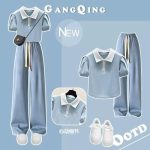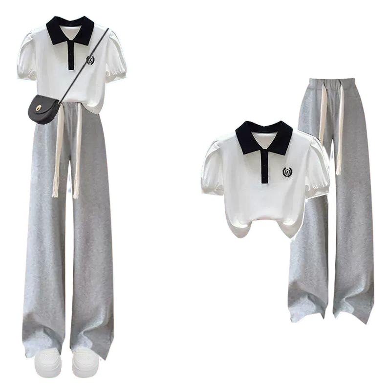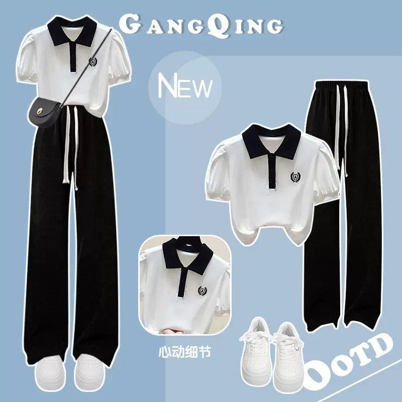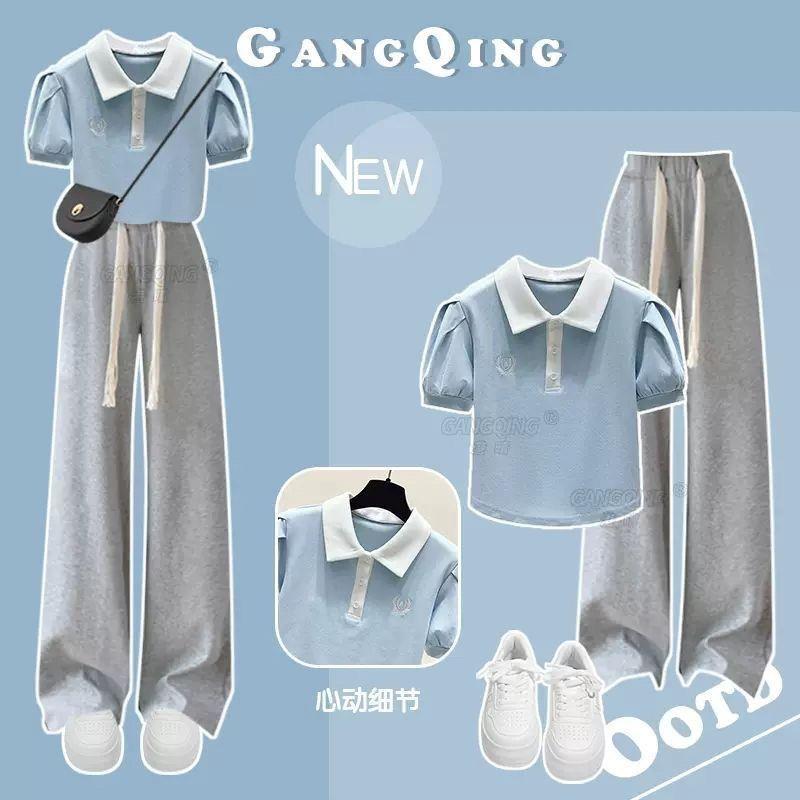 | nameOriginal | Girls' Korean-style Suit 2023 Summer New Middle and Large Children's Polo Collar Short-sleeved Girls' Casual Wide-leg Pants Two-piece Set |