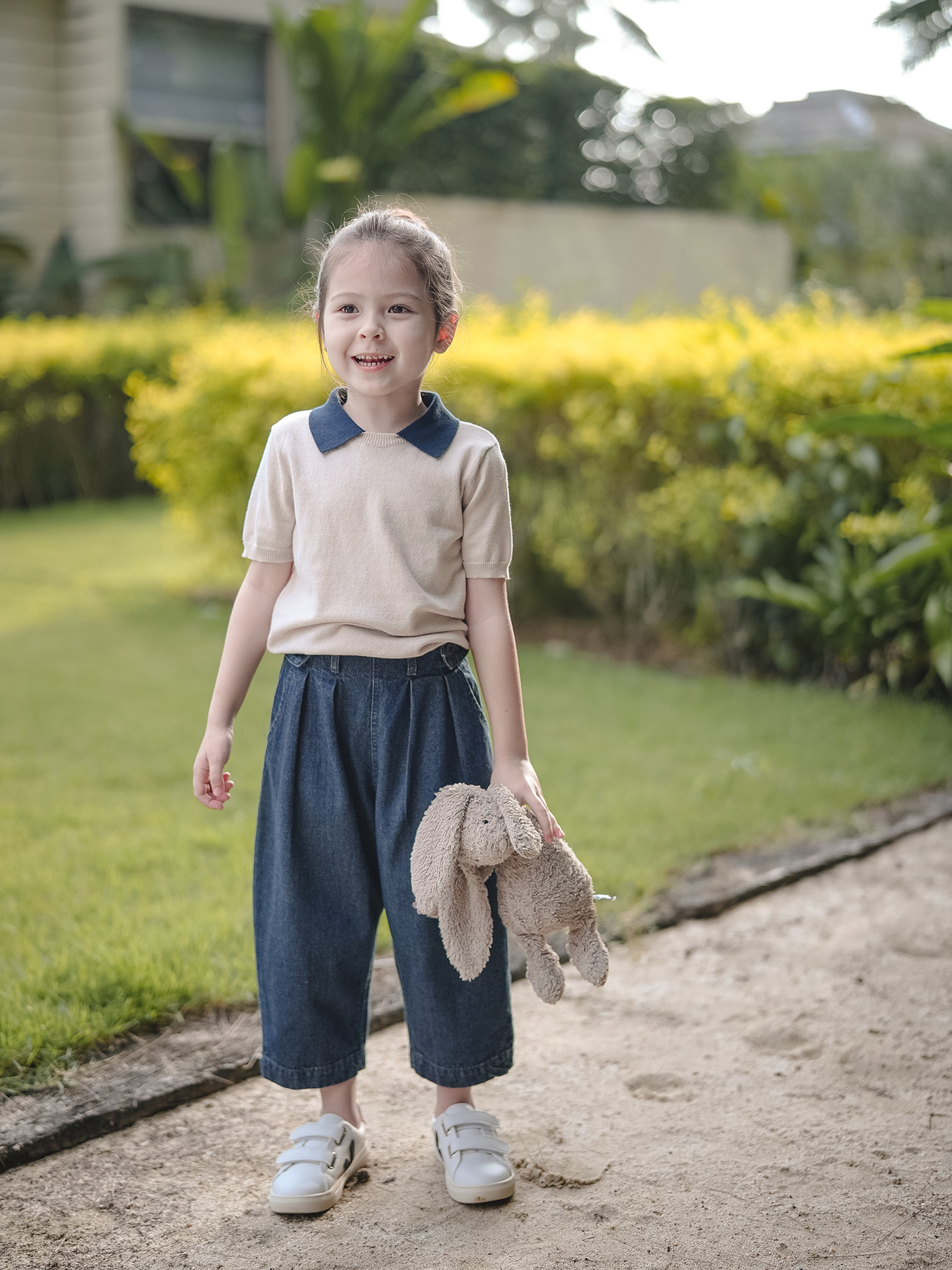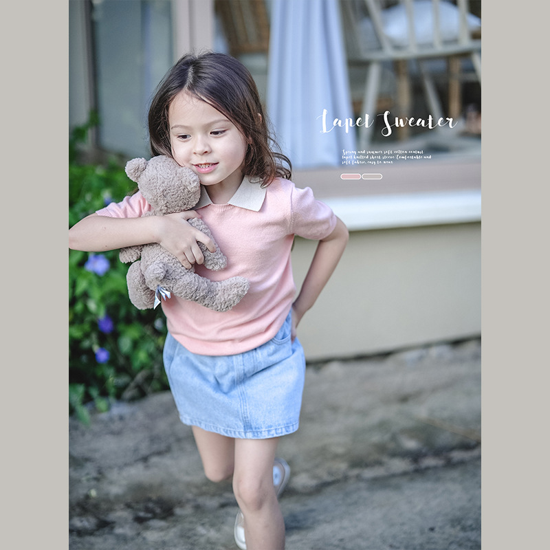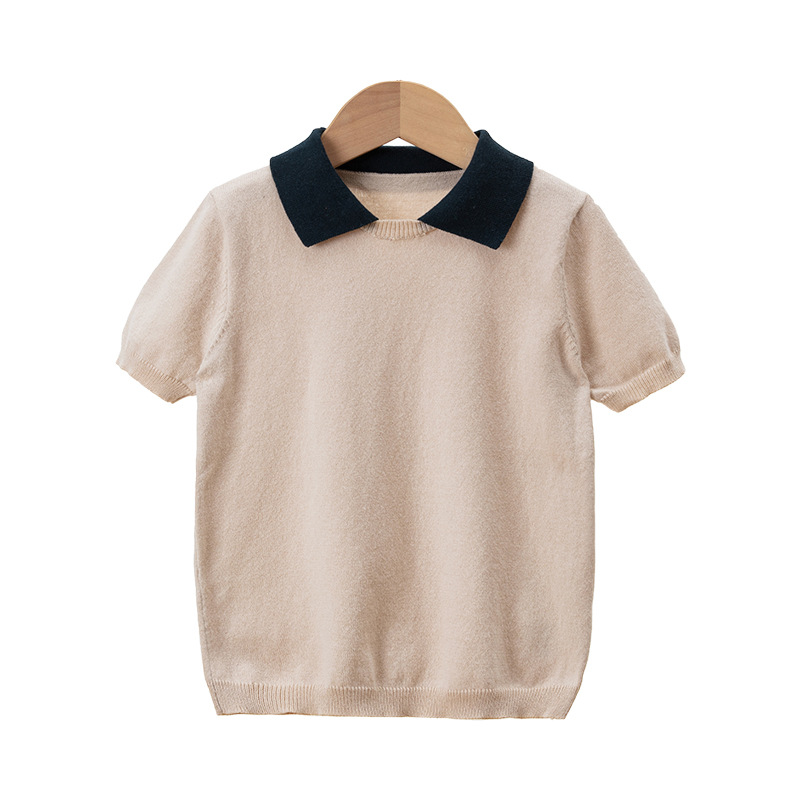 | nameOriginal | Girls' Lapel Short-sleeved Knitted Sweater 2023 Spring and Summer New Children's Contrasting Color Casual All-match T-shirt |