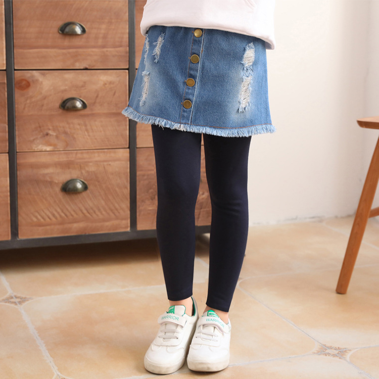 | nameOriginal | Girls' Leggings 2023 Spring and Autumn New Large Children's Denim Fake Two-Piece Culottes Children's Slim-Fit Stretch Trousers |