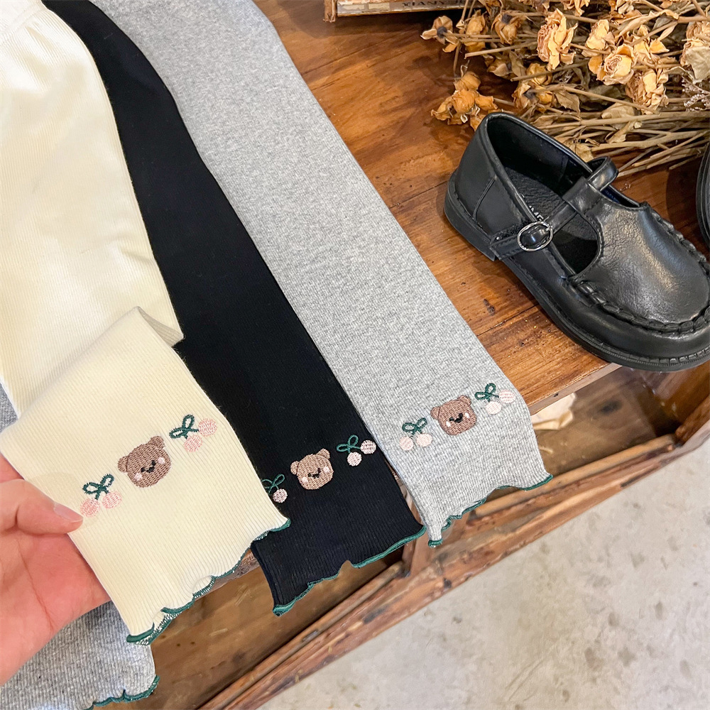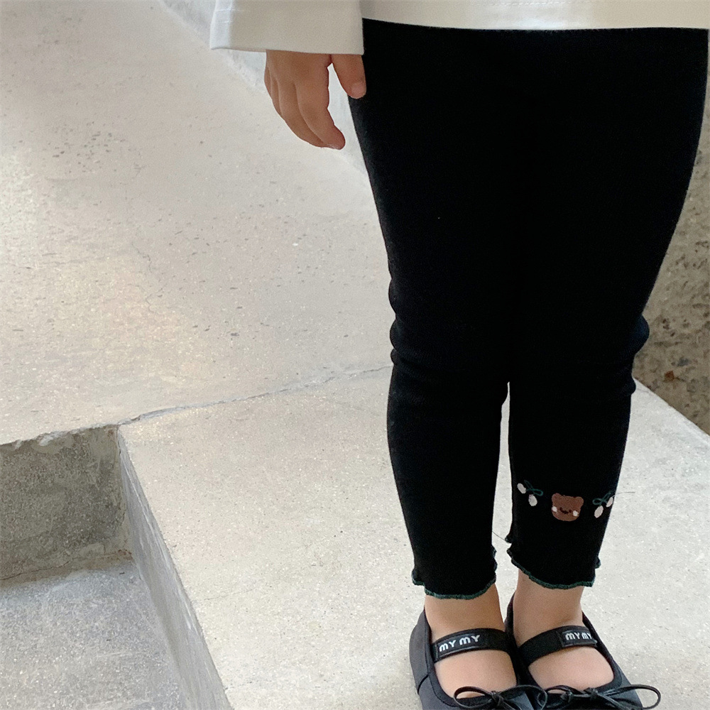 | nameOriginal | Girls' Leggings 2024 Spring New Korean Style Female Baby Bear Embroidered Slim-Fit Trousers with Pit Strip Multicolor |