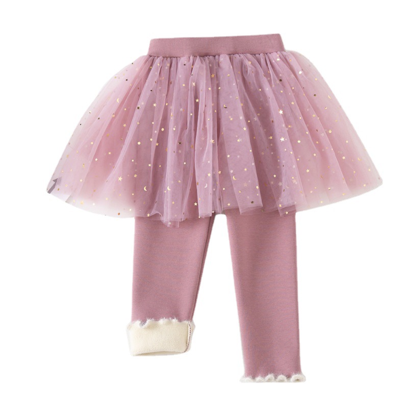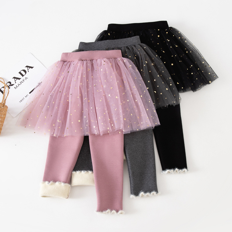 | nameOriginal | Girls' leggings fleece-lined thickened autumn and winter outer wear children's one-piece velvet culottes baby fake two-piece long pants cotton pants |