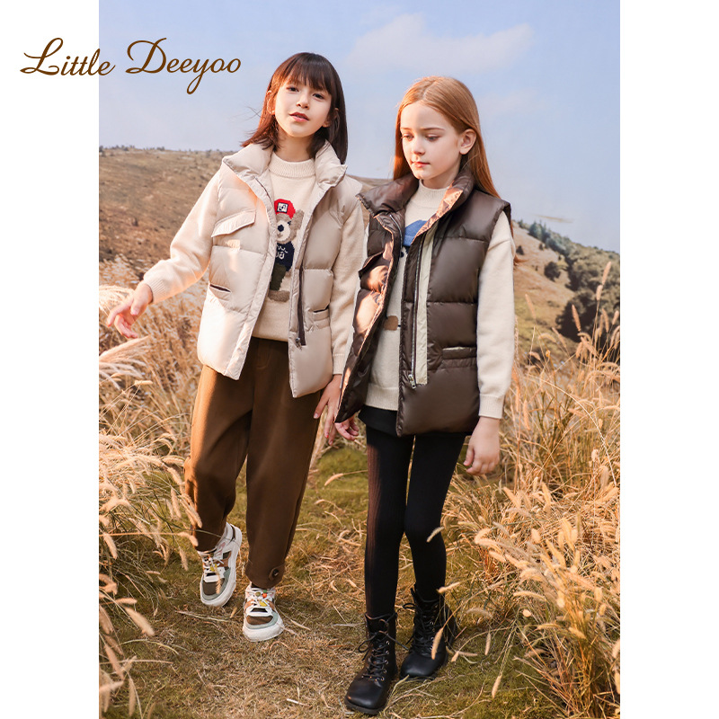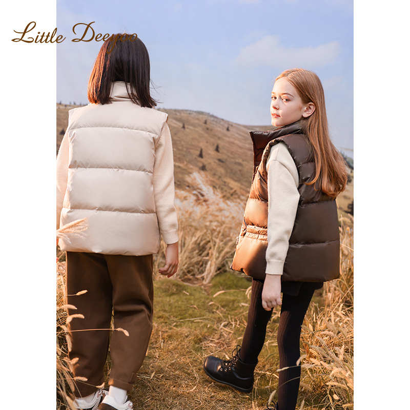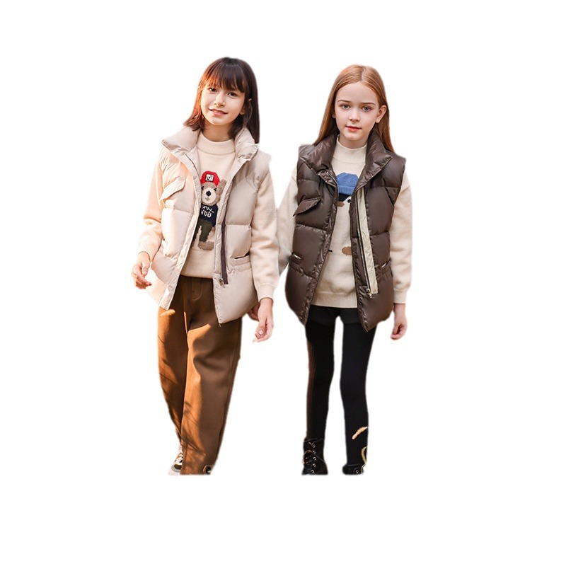 Girls’ Light Down Vest 2022 Winter New Style 90 White Duck Down Warm Vest for Children Outer Wear