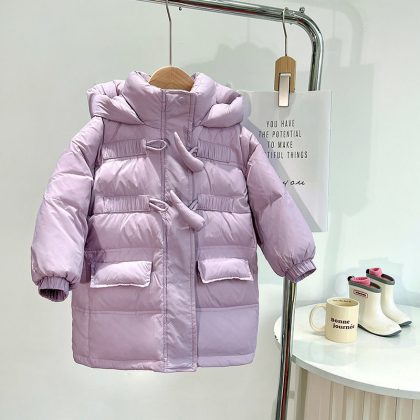 | nameOriginal | Girls' long coat children's mid-length down jacket 2024 over the knee Korean style white duck down hooded thickened winter fashion |