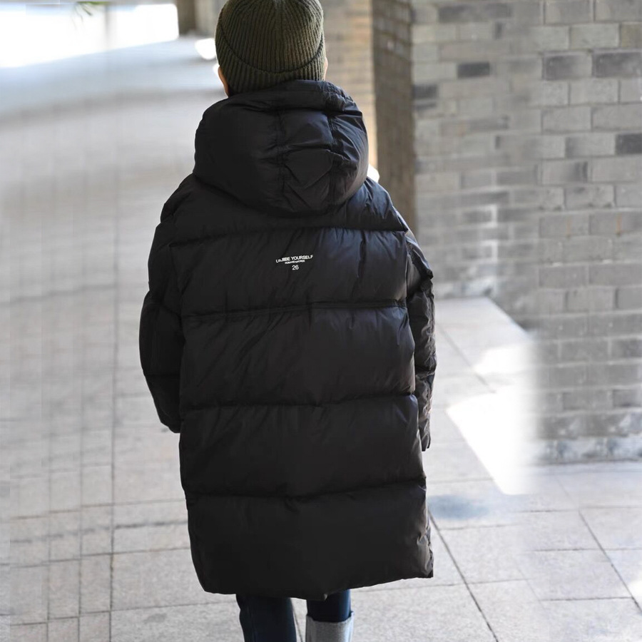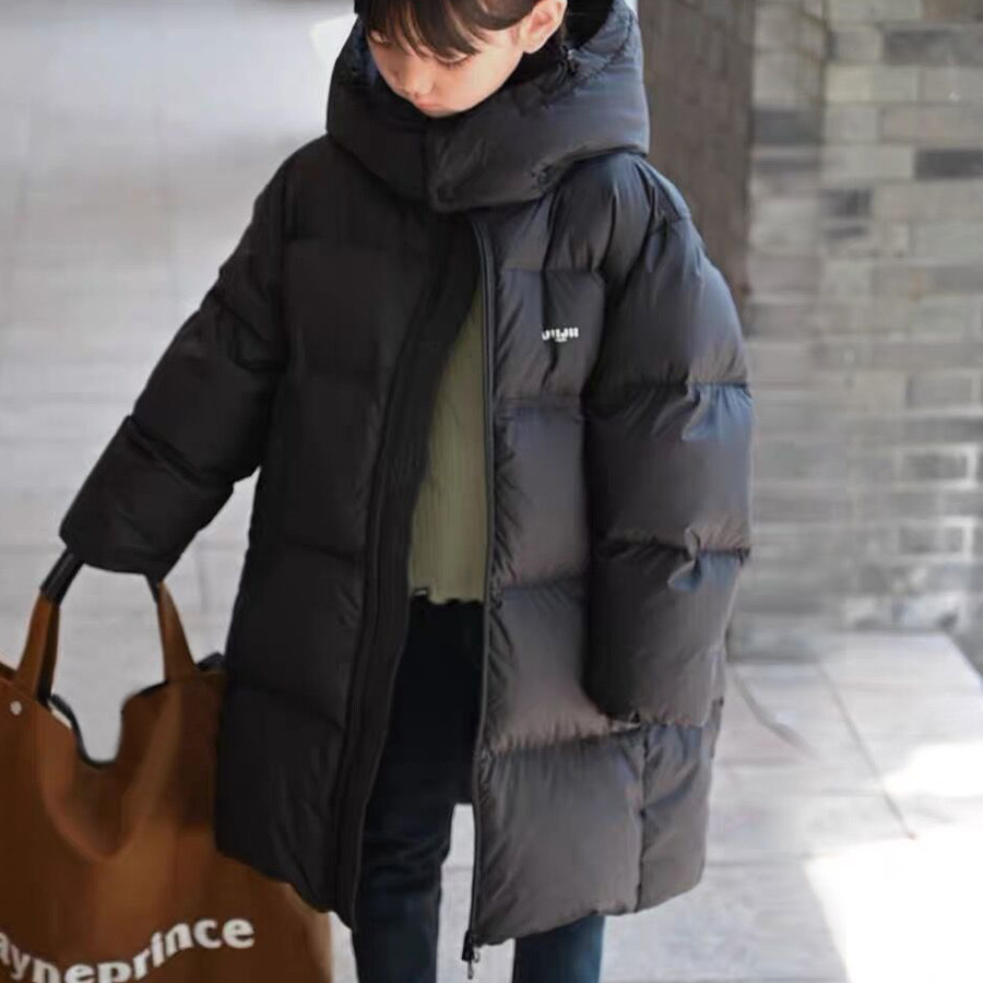 | nameOriginal | Girls' long down jacket winter new white duck down black thickened over-the-knee three-proof wash-free coat for older children |