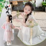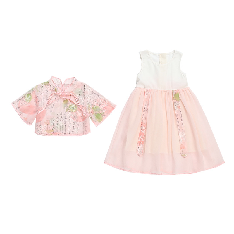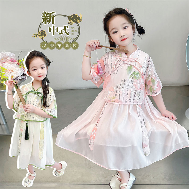 Girls’ Lotus Pond Moonlight Dress Summer 2024 New Stylish Chinese Style Performance Dress Two-piece Set