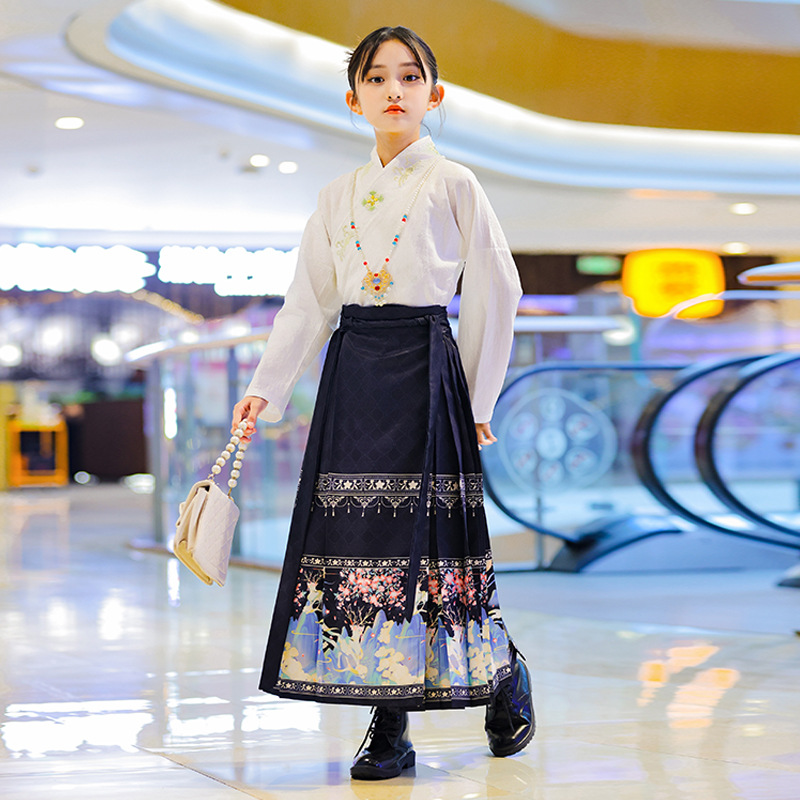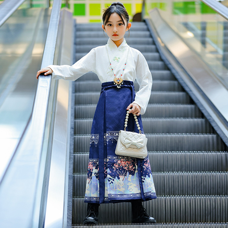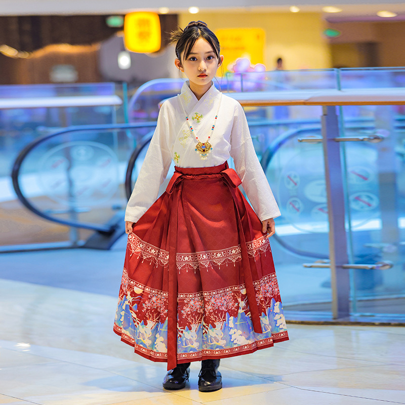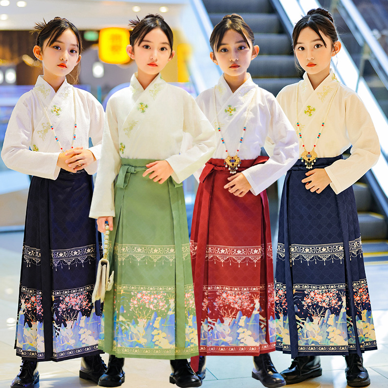 | nameOriginal | Girls' maxi skirt autumn suit 2023 new Chinese children's Ming Han clothing female small medium and big children dress |