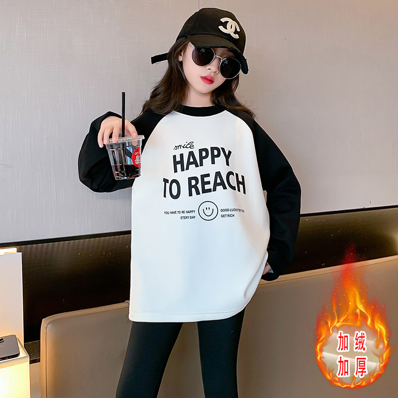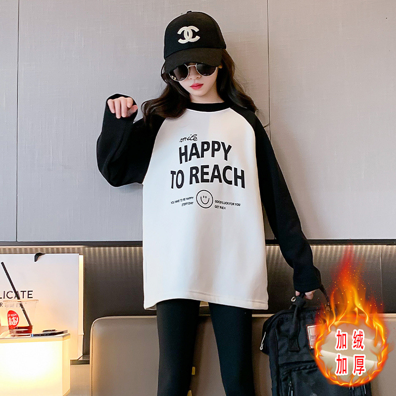 | nameOriginal | Girls' mid-length sweater fleece-lined 2023 new medium and large children's bottoming shirt thickened Korean style girls' autumn and winter top |