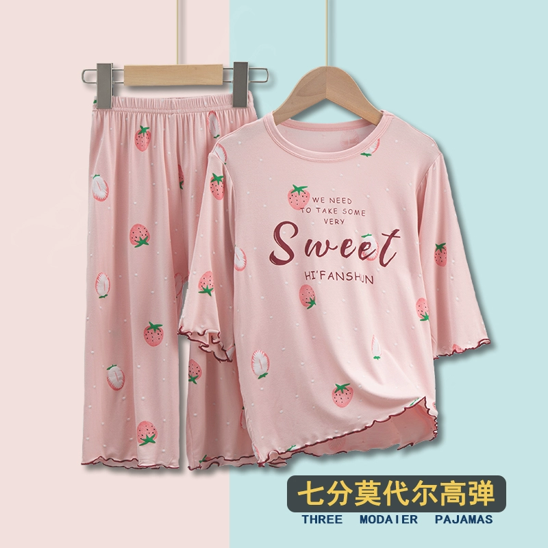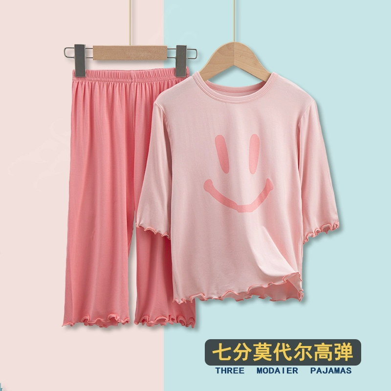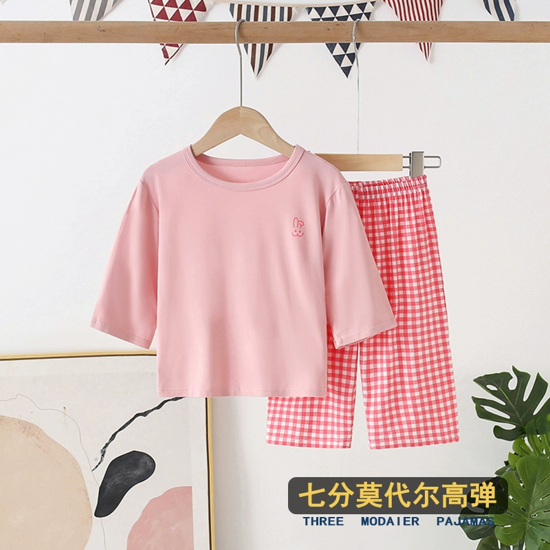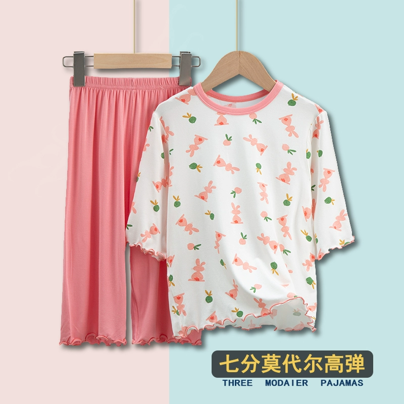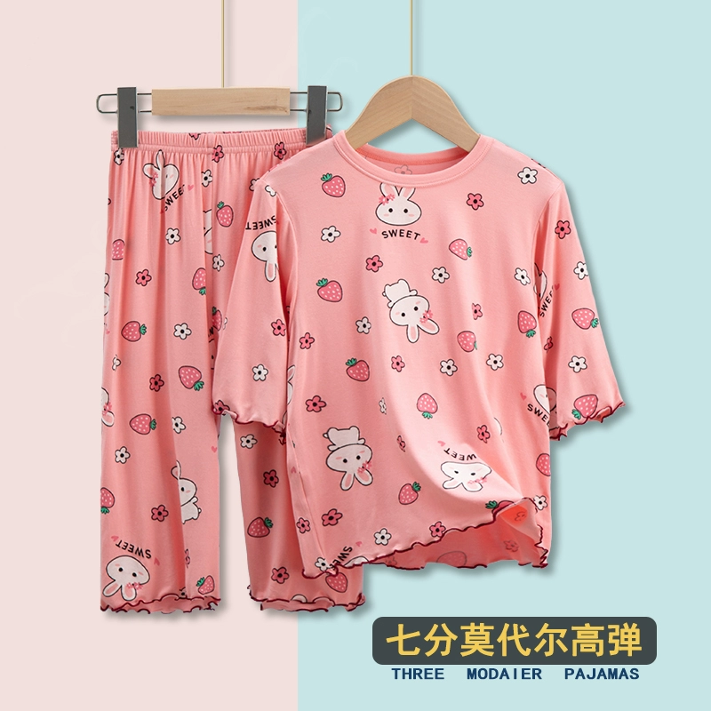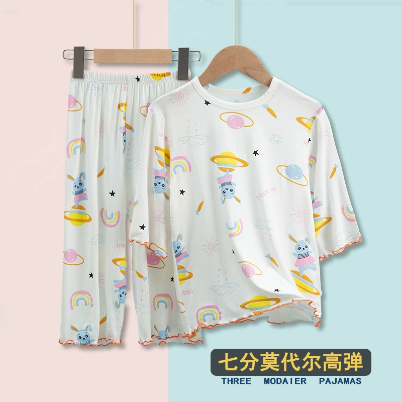 | nameOriginal | Girls' modal pajamas summer three-quarter sleeve thin section girls' medium and large children's summer short-sleeved children's home clothes summer |