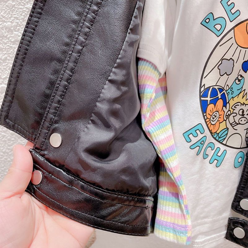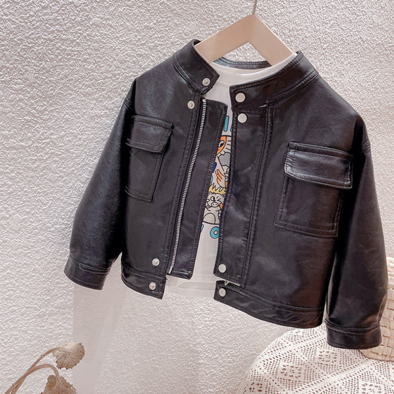 | nameOriginal | Girls' motorcycle jacket spring and autumn fashion Korean style girls' trendy cool black jacket children's jacket one-piece delivery |