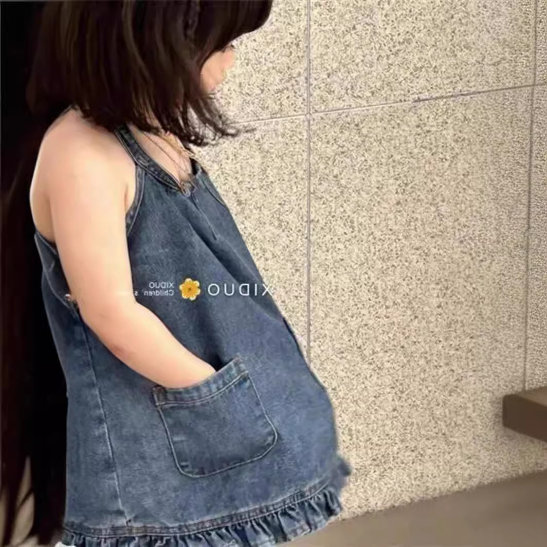 | nameOriginal | Girls Neck dress New Korean Backless Denim Skirt Summer Children's Skirt Summer Fashion L55212 |