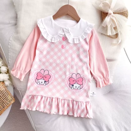 | nameOriginal | Girls' new autumn dress, cute doll lapel skirt, princess skirt, pink fashionable cartoon long-sleeved skirt |