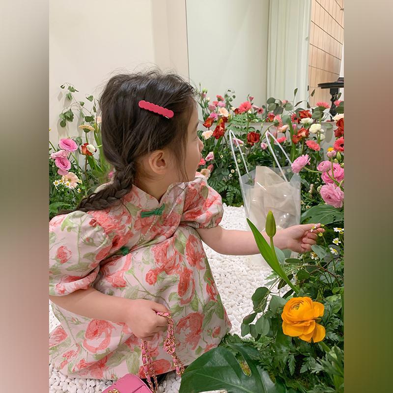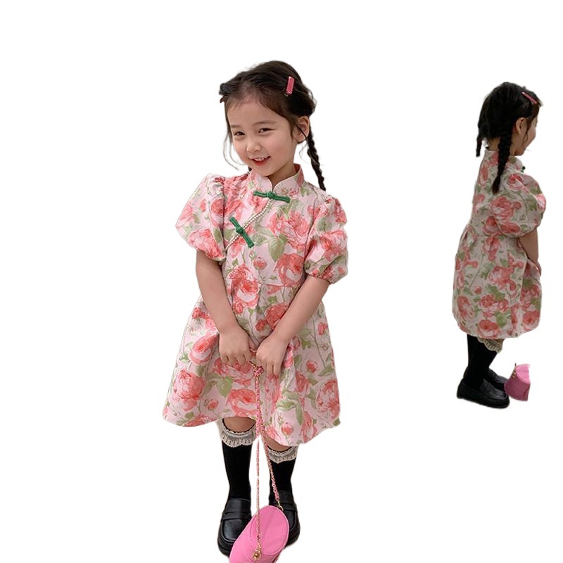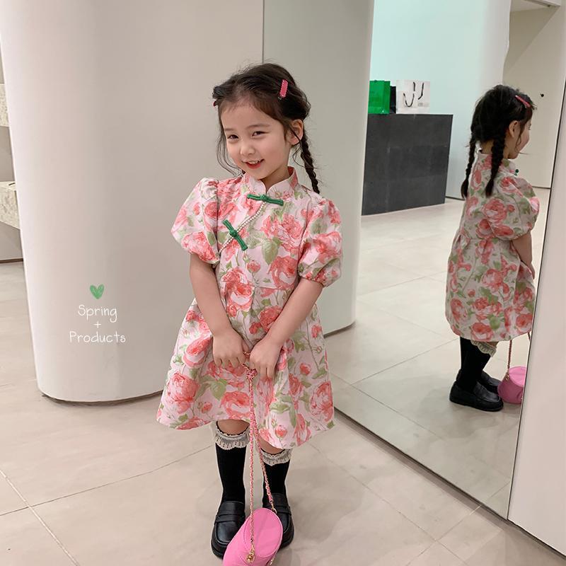 | nameOriginal | Girls New Cheongsam Retro Western Style Sweet dress Spring Bubble Sleeve Buckle Spring and Autumn Princess Dress Trendy |