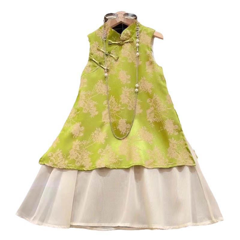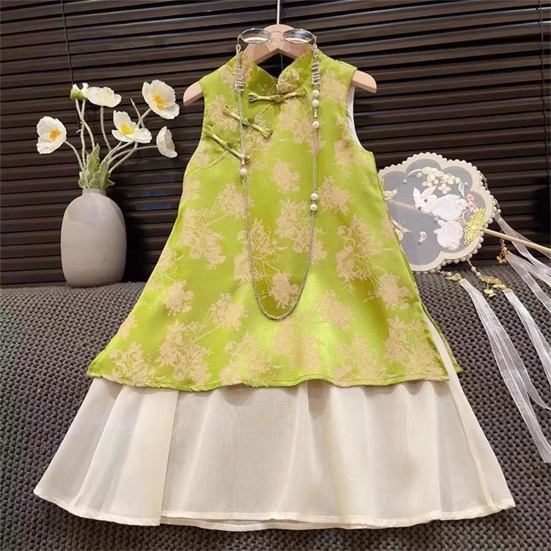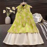 Girls’ New Chinese Style dress 2024 Spring Clothing New Children’s Clothing Hanfu Baby Floral Dress National Style Children’s Cheongsam Dress