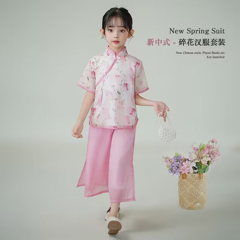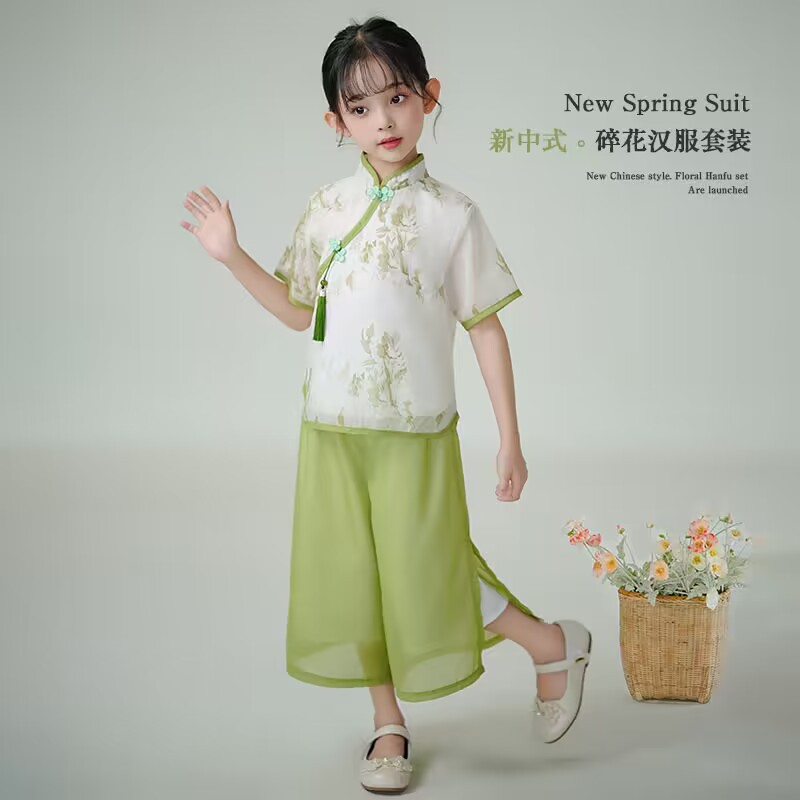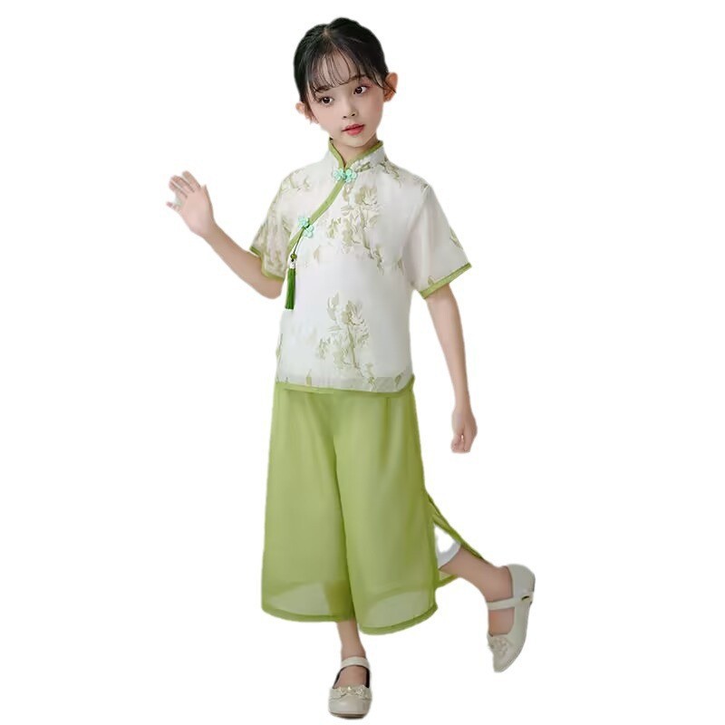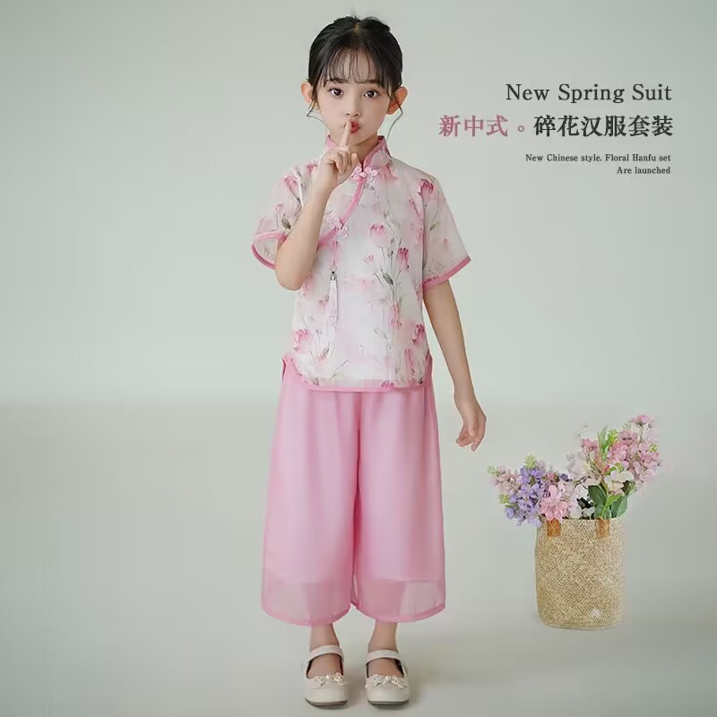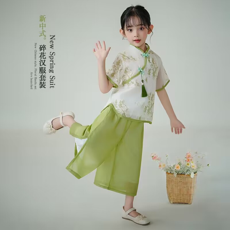 | nameOriginal | Girls' New Chinese Style National Style suit Summer New Children's Western Style Buckle Antique Style Baby Girls' Hanfu Two-piece Fashionable Suit |