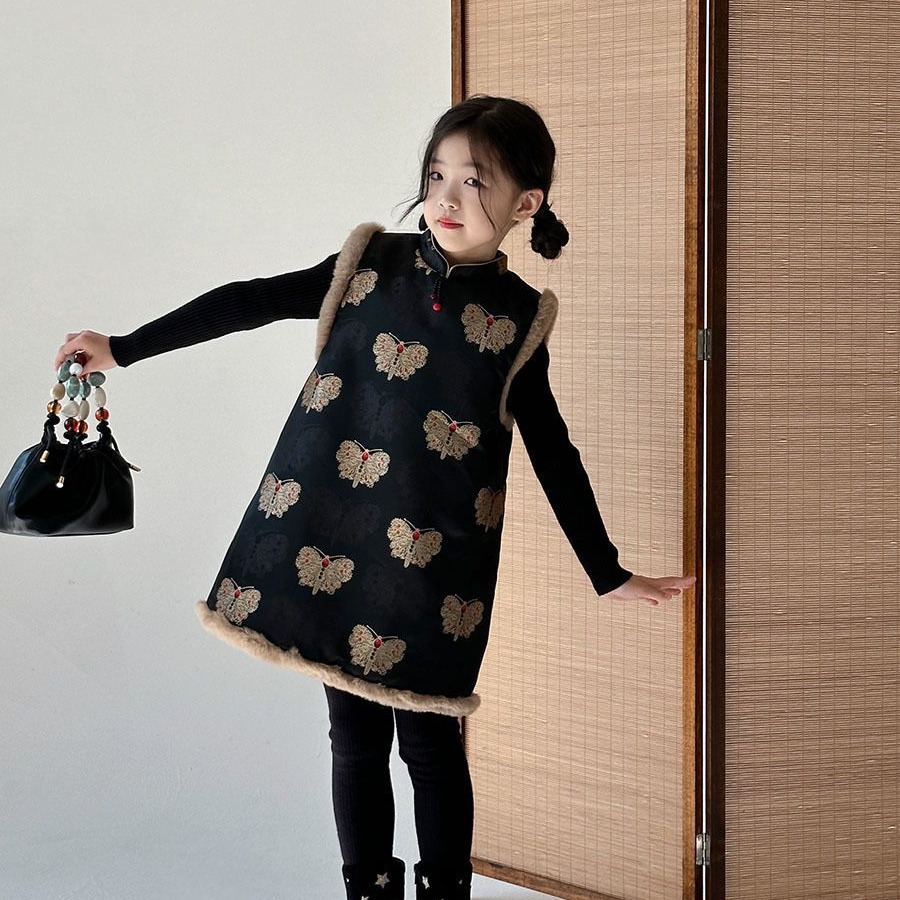 | nameOriginal | Girls' new Chinese style quilted cheongsam dress 2023 autumn and winter children's fashionable retro Chinese style hanfu dress New Year greeting dress |