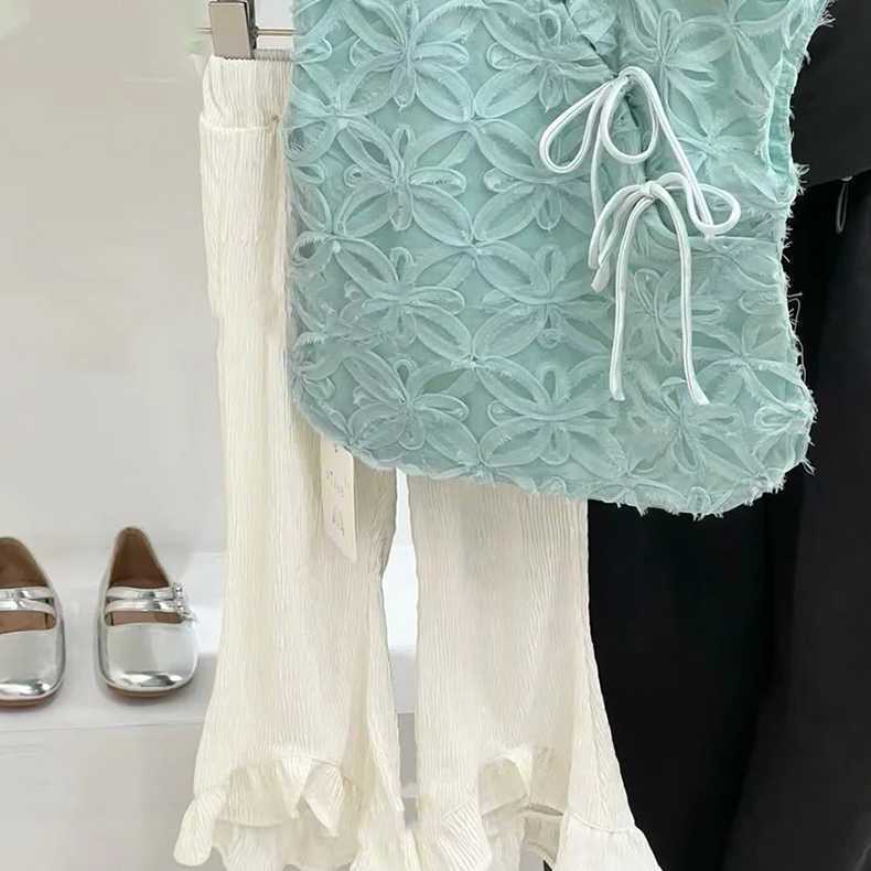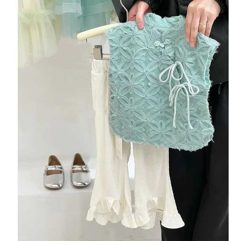 | nameOriginal | Girls' New Chinese Style suit Summer Mint Green Buckle Vest White Pants Children's Chinese Style Zen Two-piece Set |