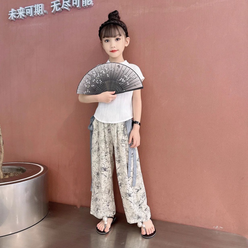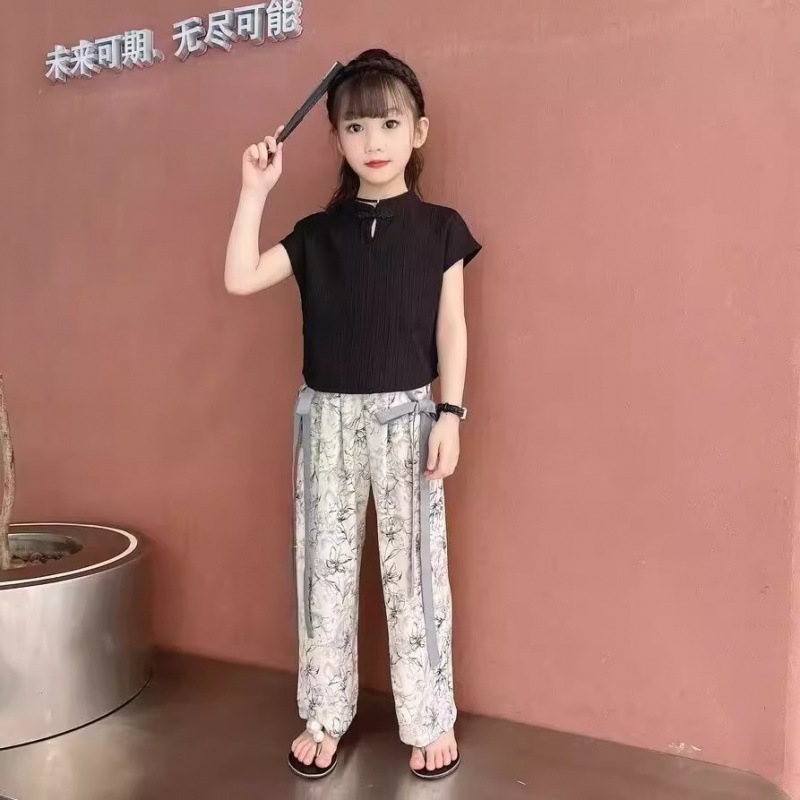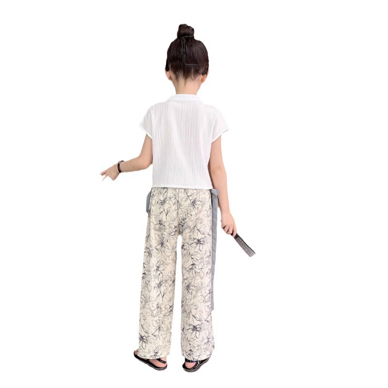 | nameOriginal | Girls' New Chinese-style suit Summer Short Top Ink Painting Wide-leg Pants for Middle and Big Children's National Style Casual Two-piece Fashionable Set |
