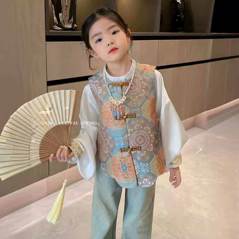 | nameOriginal | Girls' new Chinese style Tang suit vest spring 2024 new children's inner top girls' Chinese style sleeveless coat |