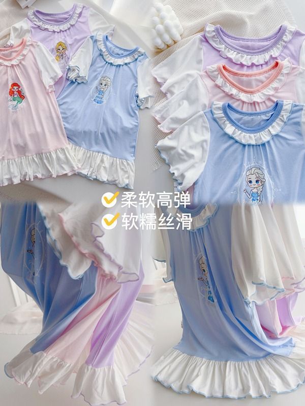 Girls’ nightdress modal children’s pajamas summer Elsa princess dress home wear home dress thin short sleeve 0055