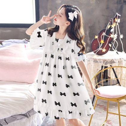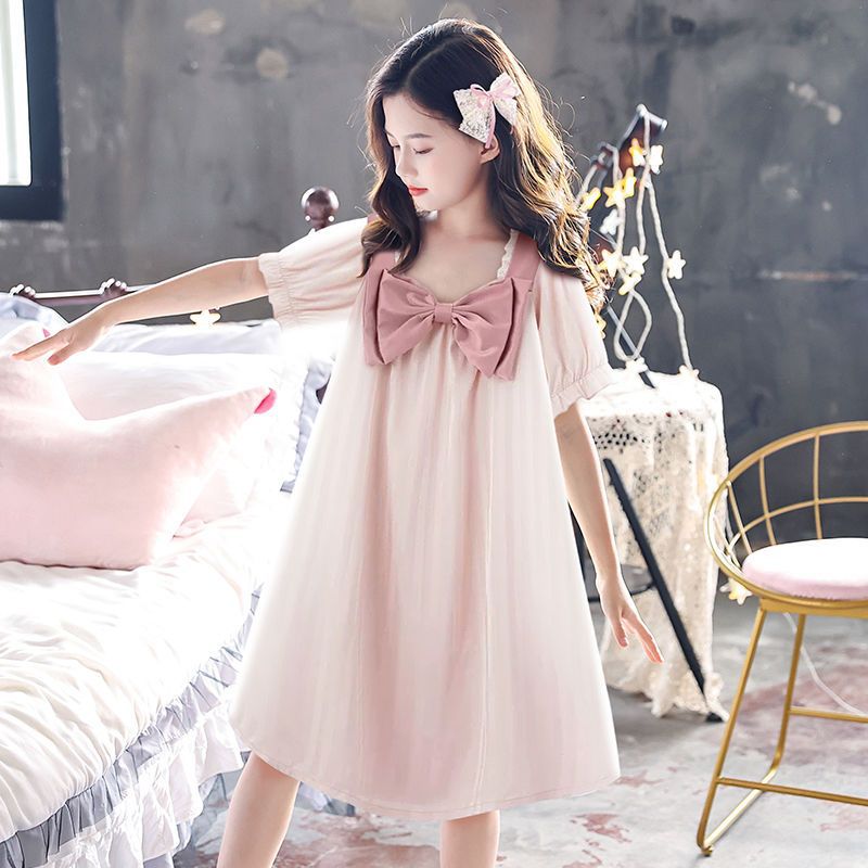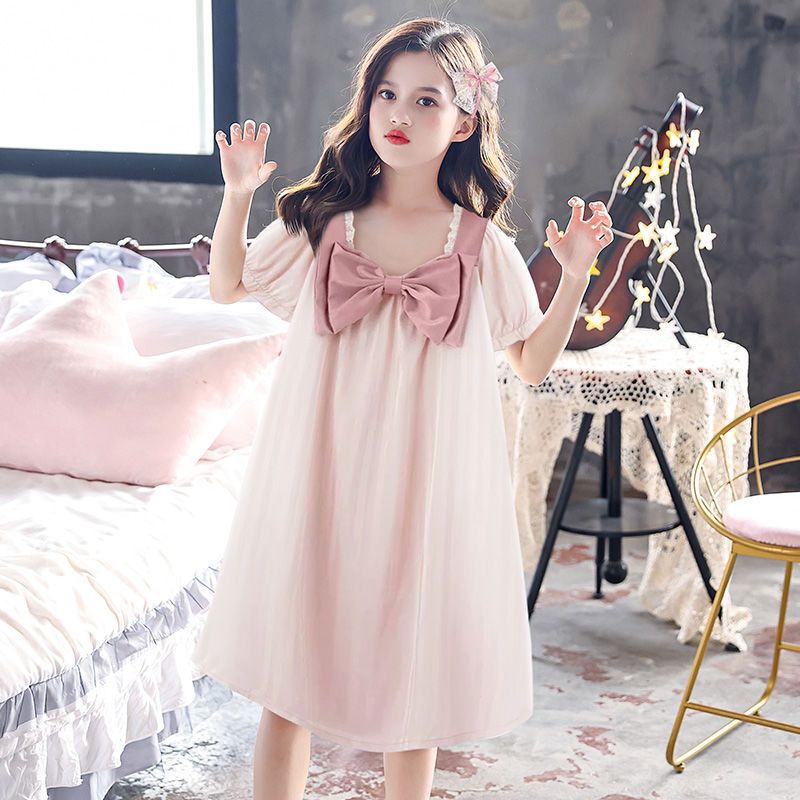 | nameOriginal | Girls' Nightdress Silk Summer Thin Children's Pajamas Girls' Air Conditioning Home Clothes Summer Medium and Large Children's Short Sleeve Princess |