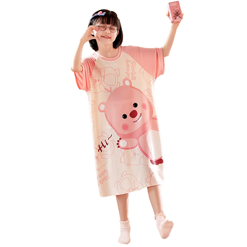 Girl's Nightdress Summer Modal Short-sleeved Thin Cartoon Sweet Princess Style Little Girl's Children's Round Neck Home Clothes